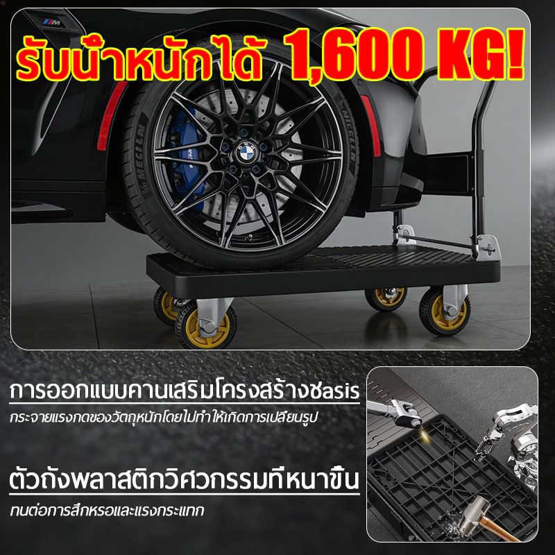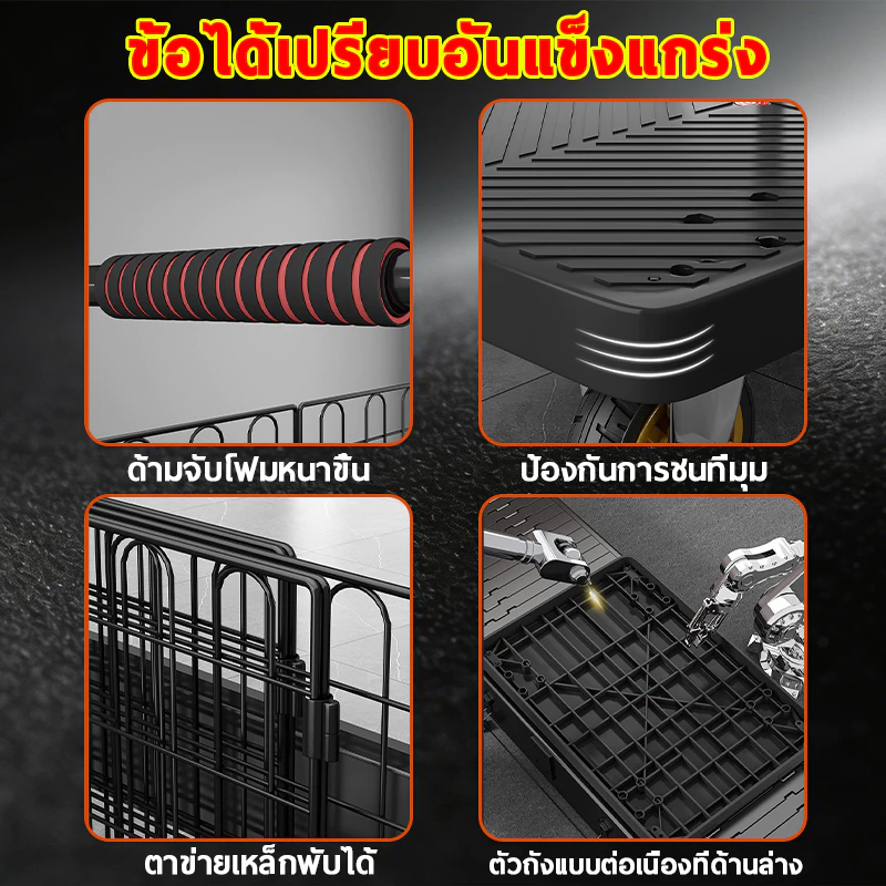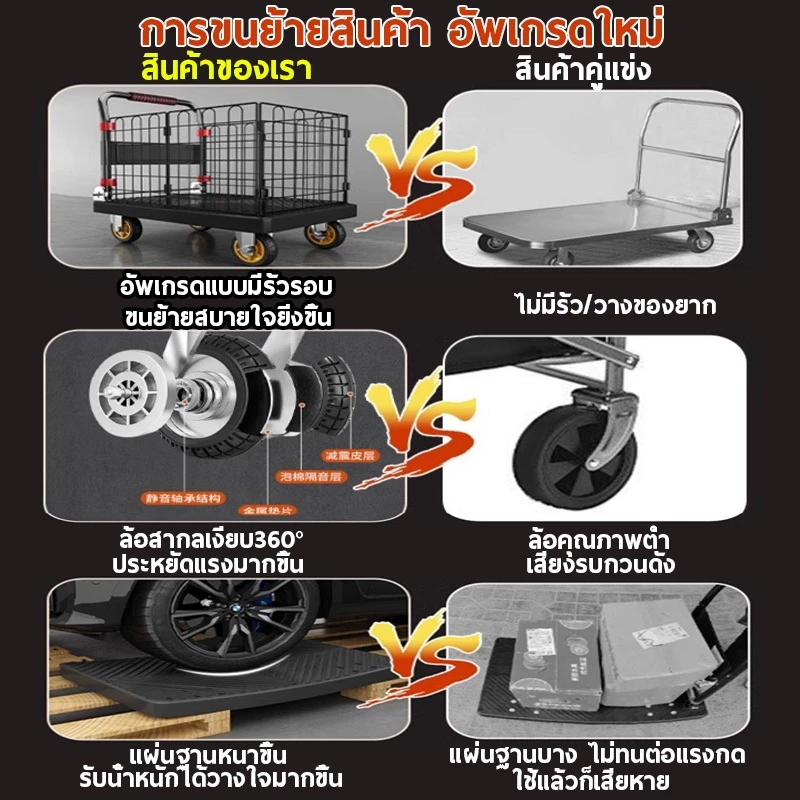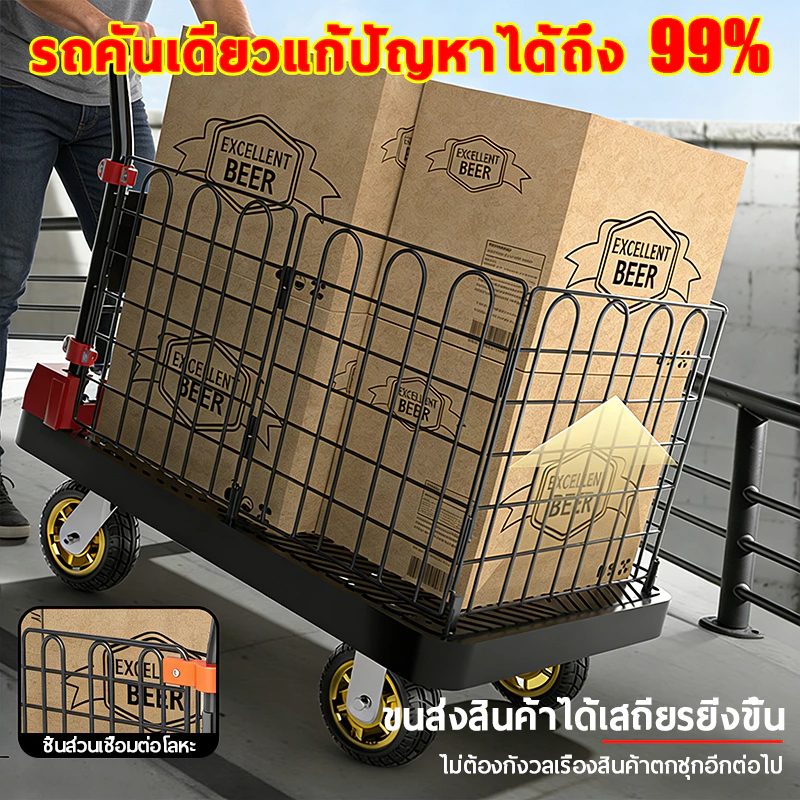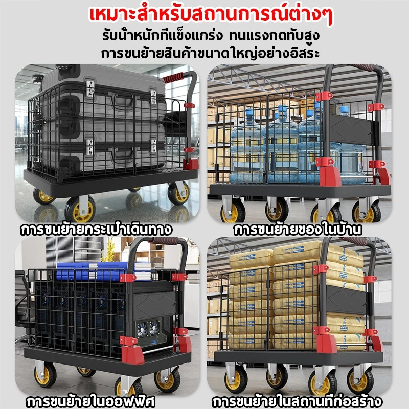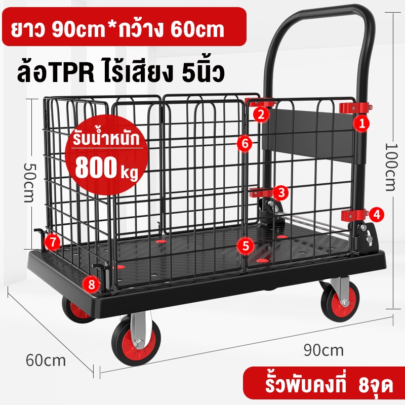 รถเข็นรั้ว รถเข็นของ 4 ล้อ รถเข็นแบ บมีรั้ว รถเข็นพับได้ 90*60cm รองรับน้ำหนัก 1000 กก ถเข็นแบน แข็งแรง ทนท