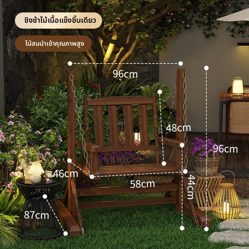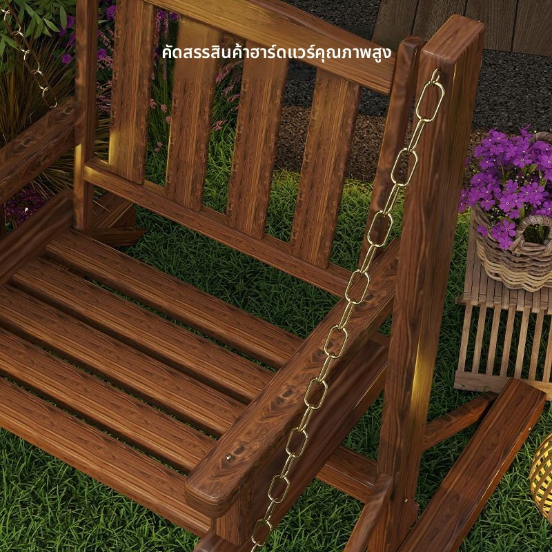 ลานกลางแจ้งสวนชิงช้าไม้เนื้อแข็งกันฝนและป้องกันการกัดกร่อนเก้าอี้แขวนไม้เก้าอี้โยกเดี่ยว
