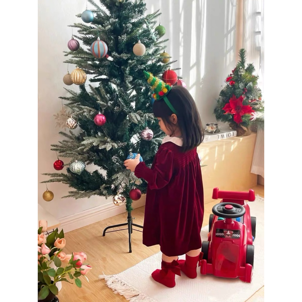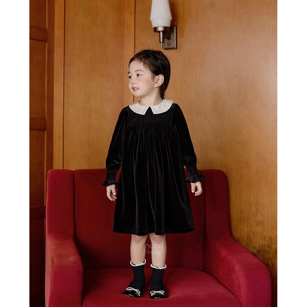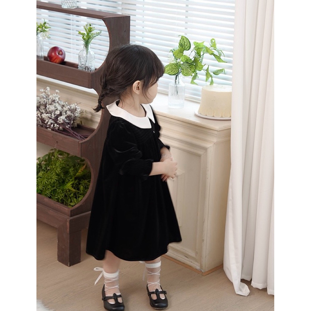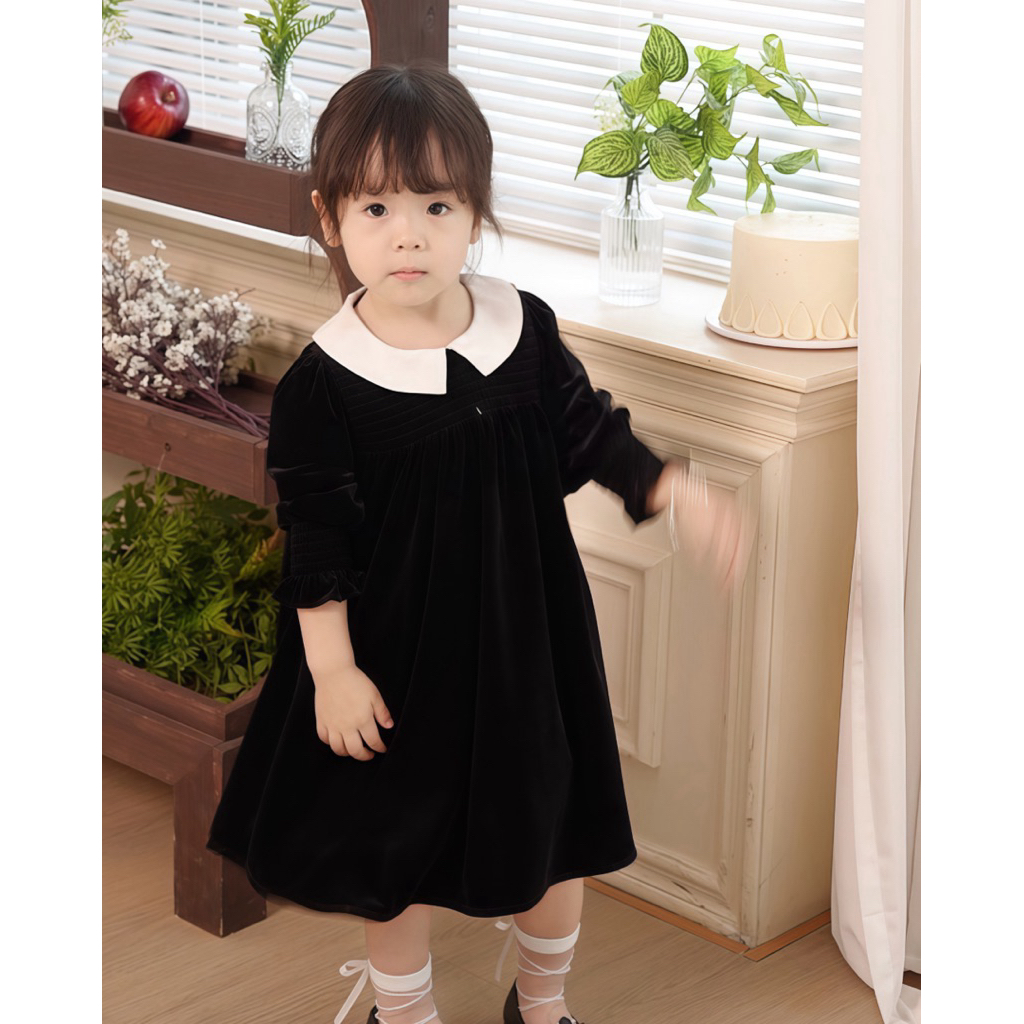 🇹🇭พร้อมส่งจากไทย🇹🇭 ชุดเดรสกำมะหยี่คอปก เดรสสีแดงสำหรับเด็ก เดรสสีดำสำหรับเด็ก ชุดคริสมาสเด็ก