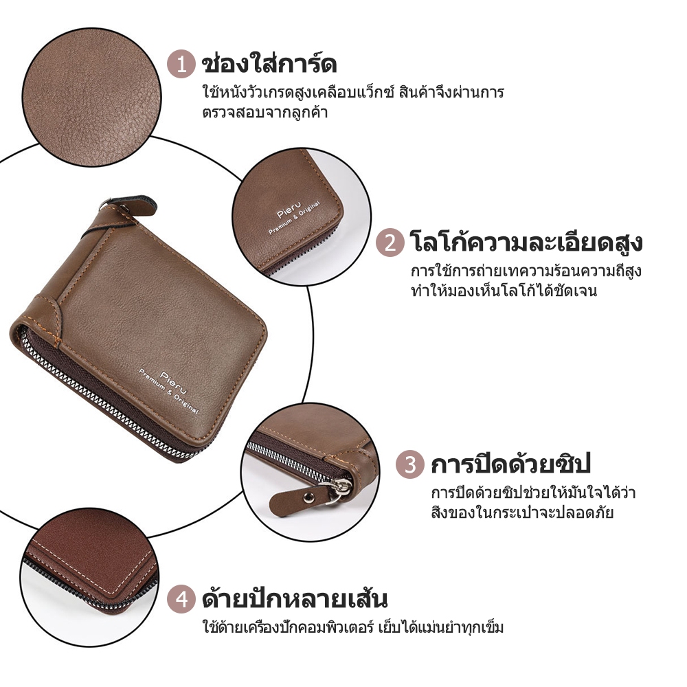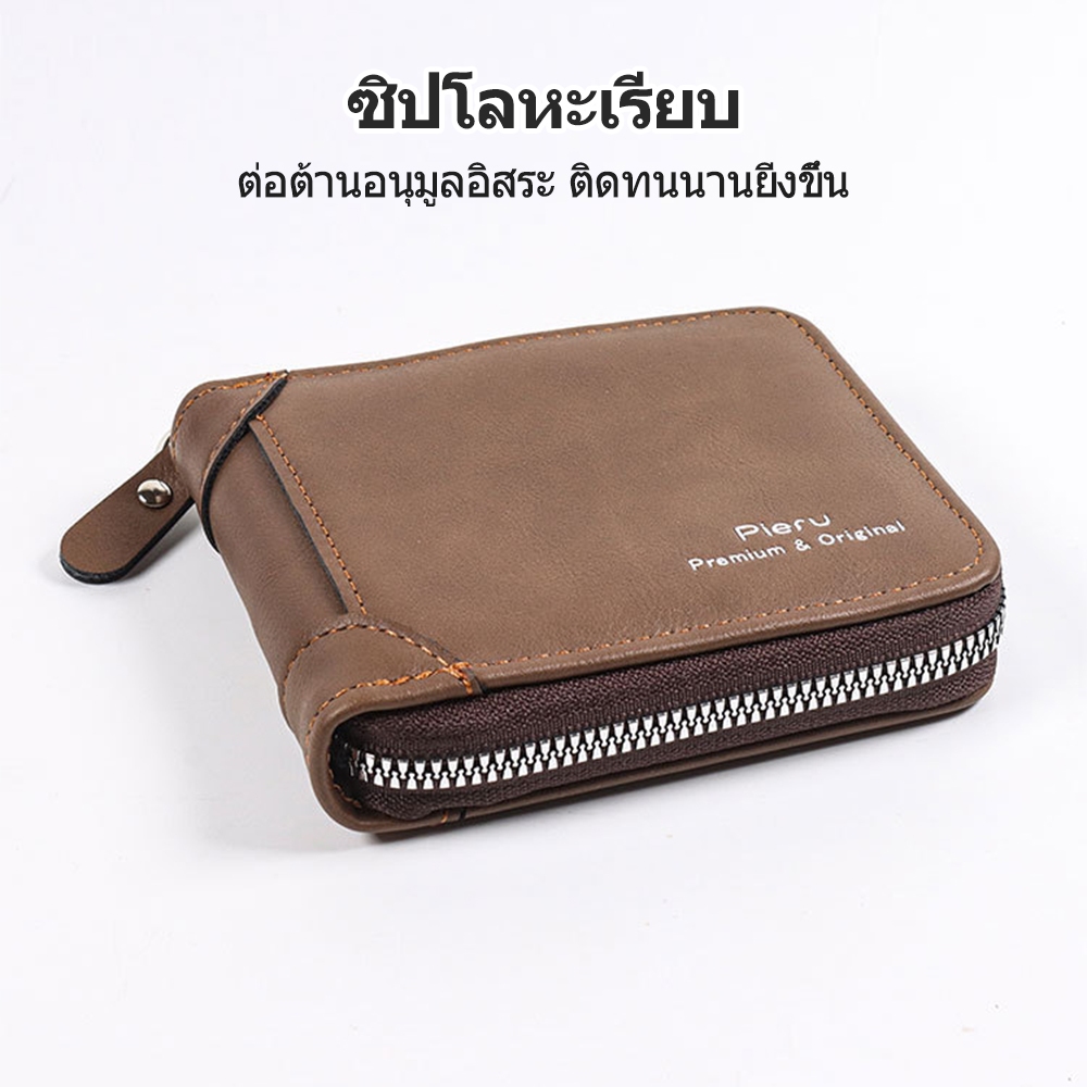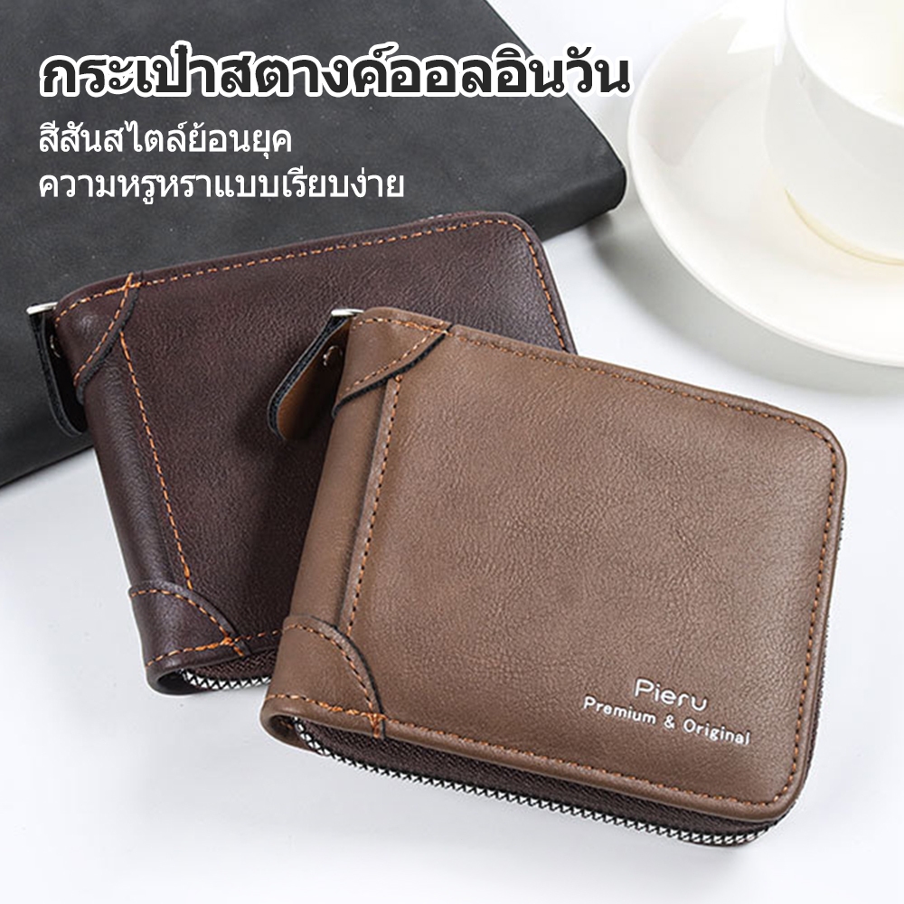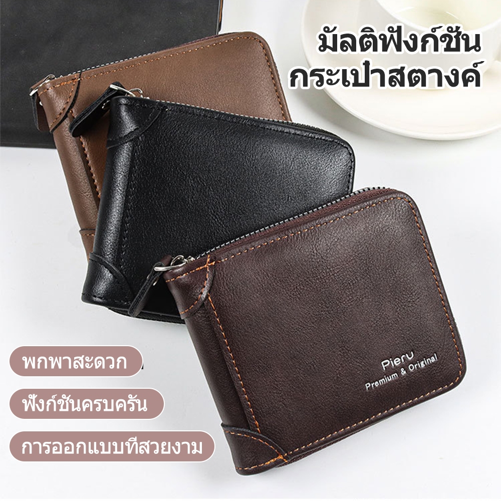 กระเป๋าสตางค์ ใบสั้น หนังวัวแท้ แบบสามพับ แนวนอน แฟชั่นสําหรับผู้ชาย