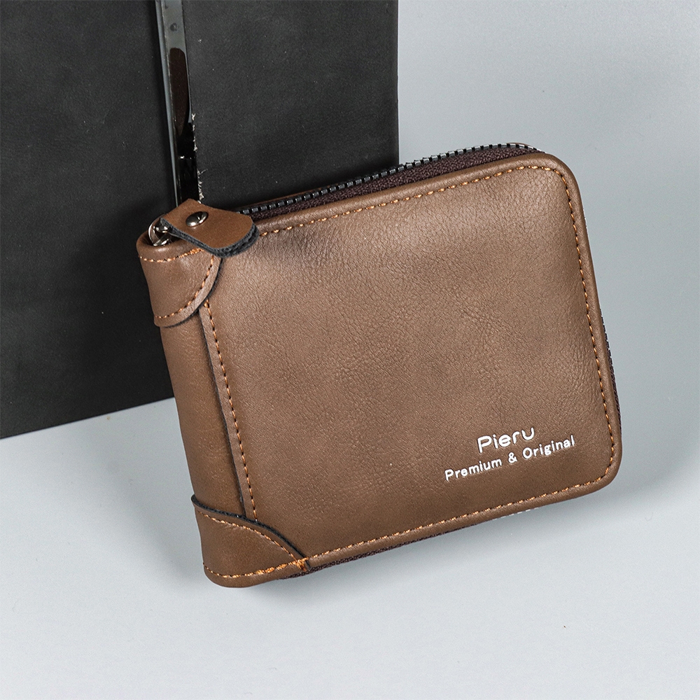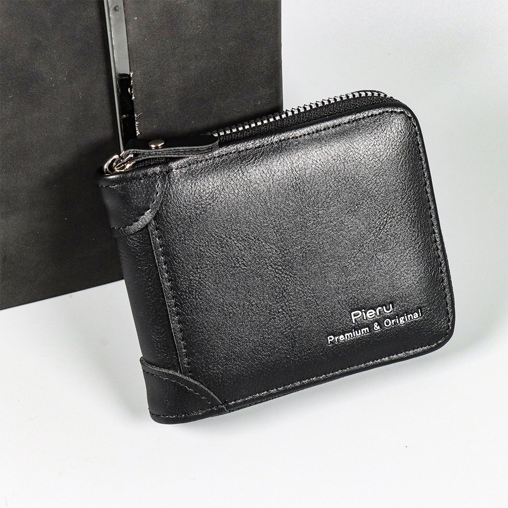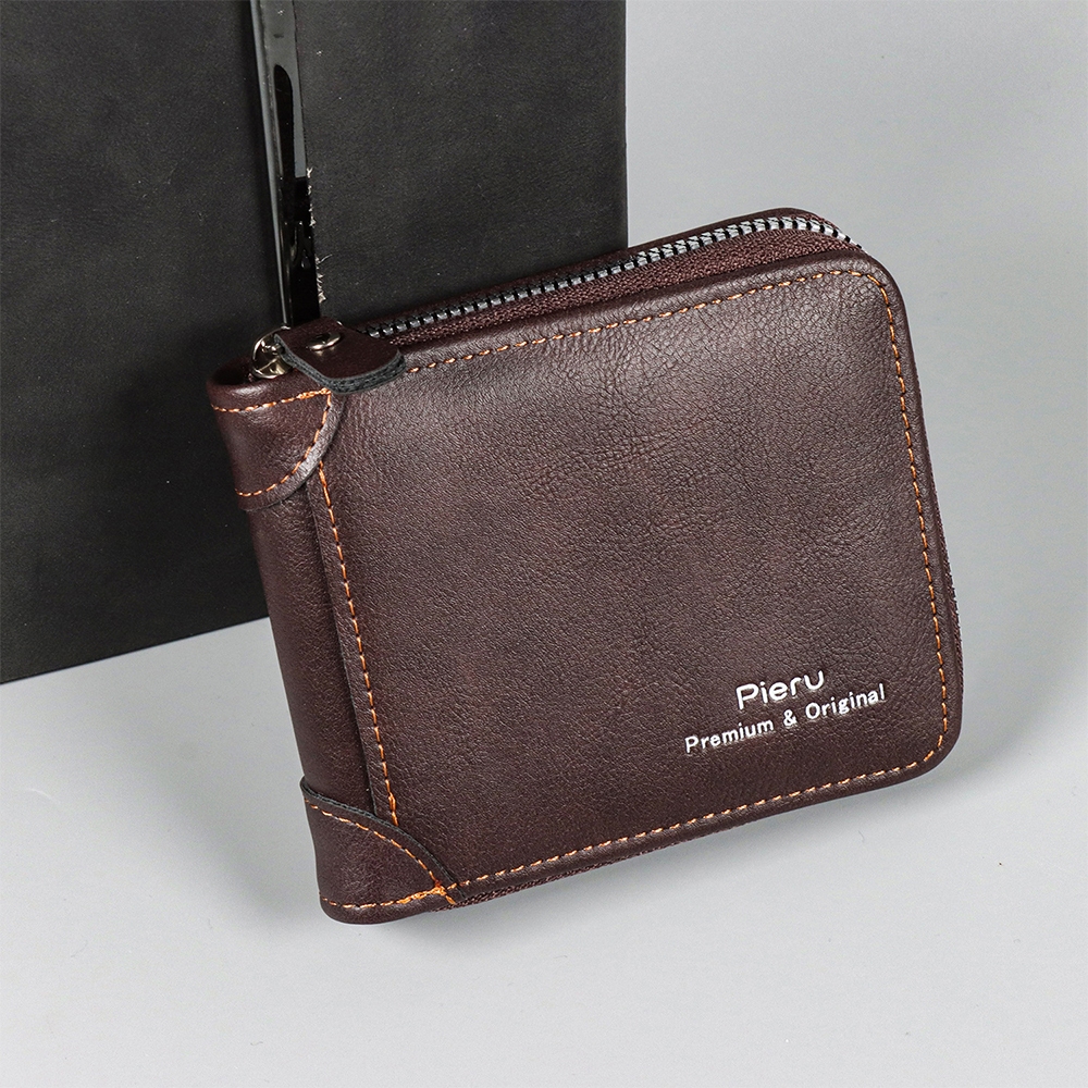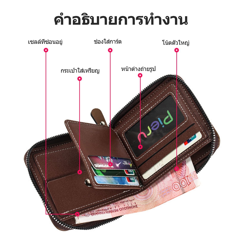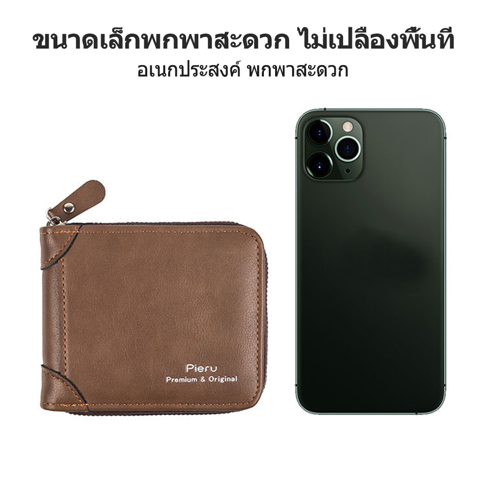 กระเป๋าสตางค์ ใบสั้น หนังวัวแท้ แบบสามพับ แนวนอน แฟชั่นสําหรับผู้ชาย