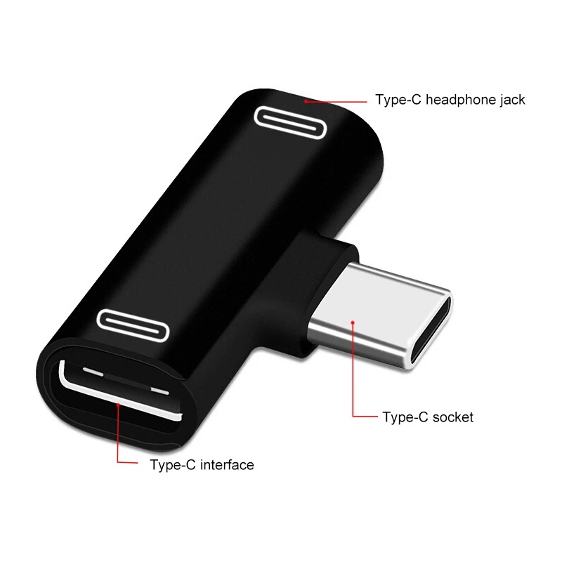 2-in-1 Type-C Double Female อะแดปเตอร์แปลงสายเคเบิ้ลเสียง / ชาร์จเร็วรองรับเสียงโทร
