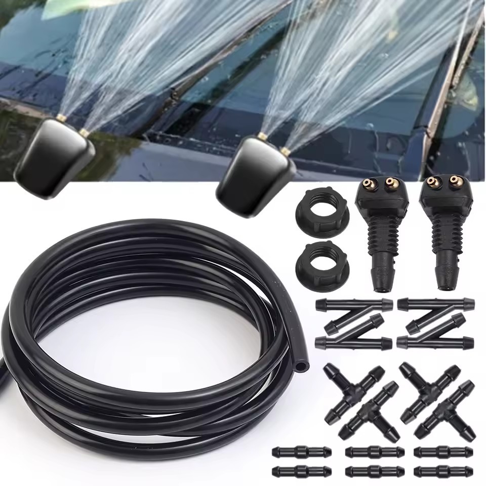 [เช้า3ค] ชุดท่อสเปรย์ปัดน้ําฝนรถยนต์สากลพร้อมข้อต่อ6ตัวและ2หัวฉีด,ท่อเครื่องซักผ้า1/2มสําหรับทําความสะอาดกระจกหน้ารถ,ยางทนทาน/ชุดเปลี่ยนพลาสต