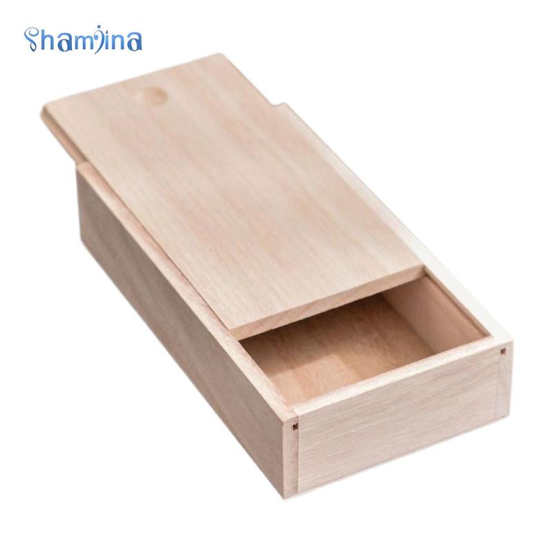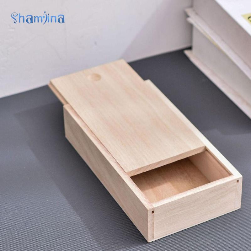 [Shamjina] ไม้กล่องเก็บที่มีฝาปิดสไลด์กรณีไม้ ทําเอง การจัดเก็บกล่องดินสอกล่องของขวัญกล่องเครื่องประดับของขวัญสําหรับงานอดิเรกแต่