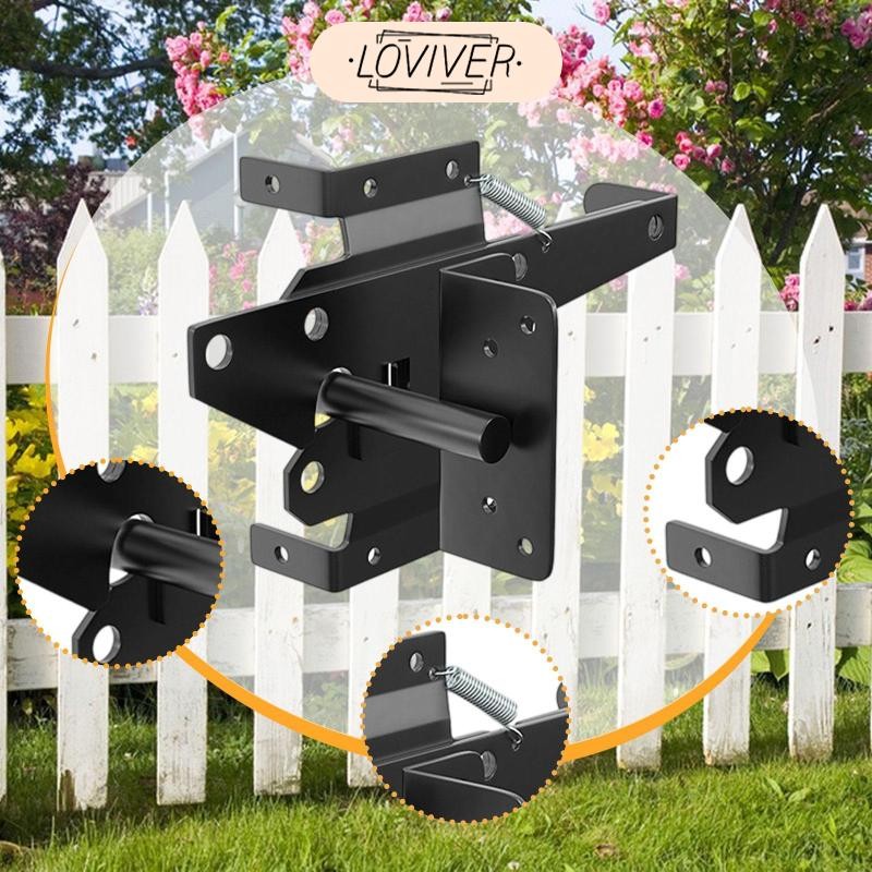 LOVIVER Heavy Duty Self Locking Gate Latch สีดําโพสต์ Mount สําหรับ Garden Farmhous Yard