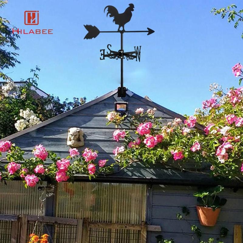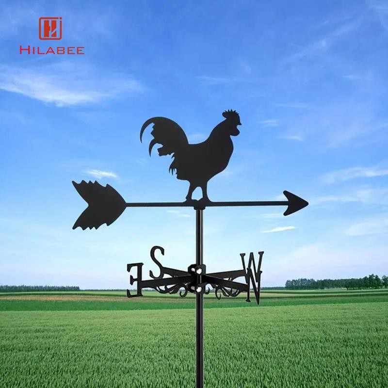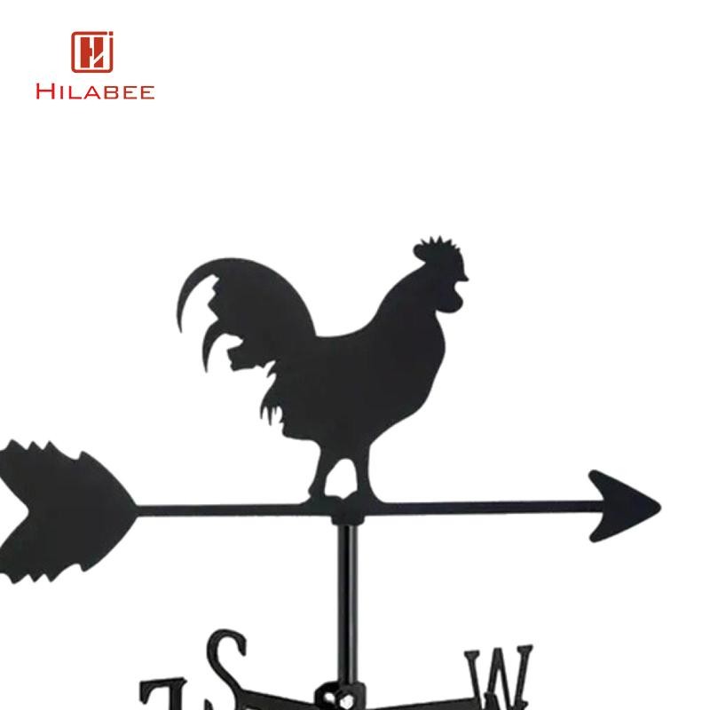 [hilabee] Black Rooster Weathervane,Animal Metal Weather Vane Art,อุปกรณ์ตกแต่งหลังคาเหล็กตัวบ่งชี้ทิศทางลมสําหรับภายนอก