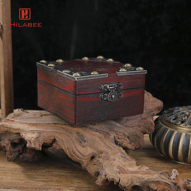 [สวัสดี] กล่องตกแต่งหีบสมบัติพร้อมล็อคเดสก์ท็อปแบบพกพาของขวัญวันวาเลนไทน์กล่องเก็บเครื่องประดับไม้สําหรับต่างหูกระบ