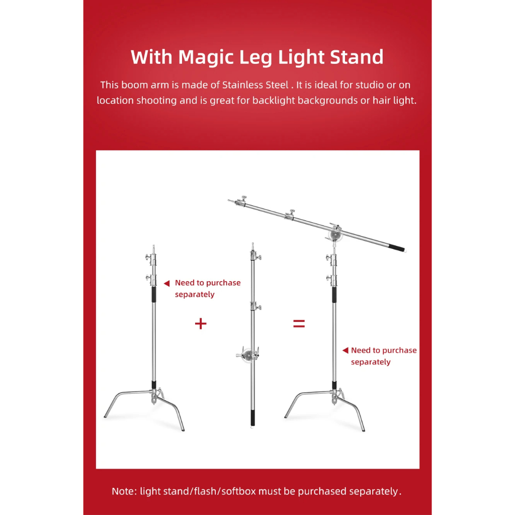 Ambystful สแตนเลส MF-01 94-232 ซม.37 "- 91 "สตูดิโอ Photo Telescopic Boom Arm Top Light สําหรับ Pro Studio แฟลช Strobe