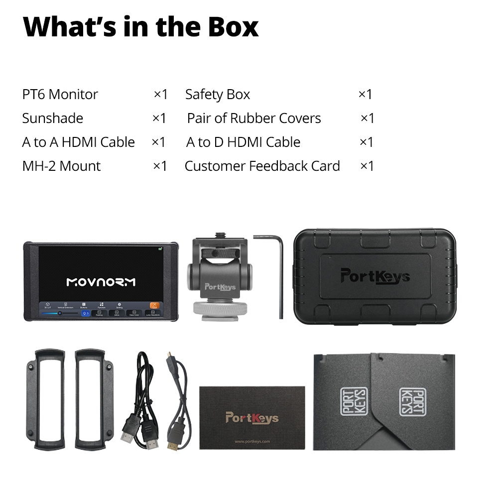 Portkeys PT6 5.2 นิ้วหน้าจอสัมผัส 3D LUT 600nit 1080P 4K-HDMI-ใช้งานร่วมกับจอแสดงผล Field Mointor สําหรับสตรีมมิ่งสด