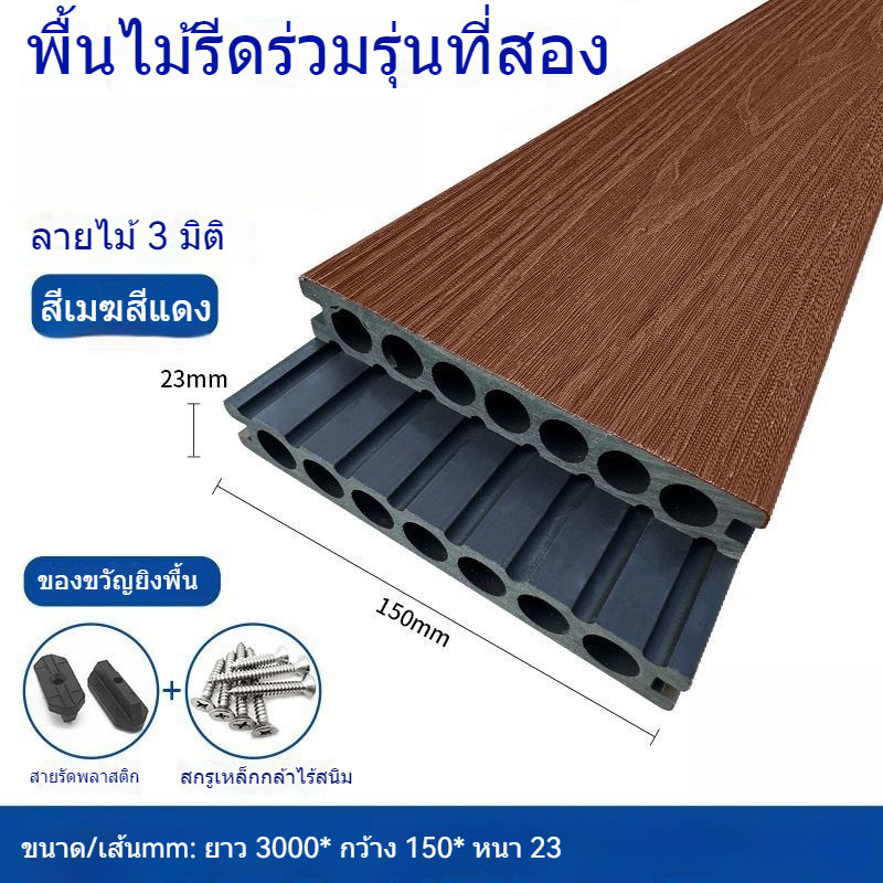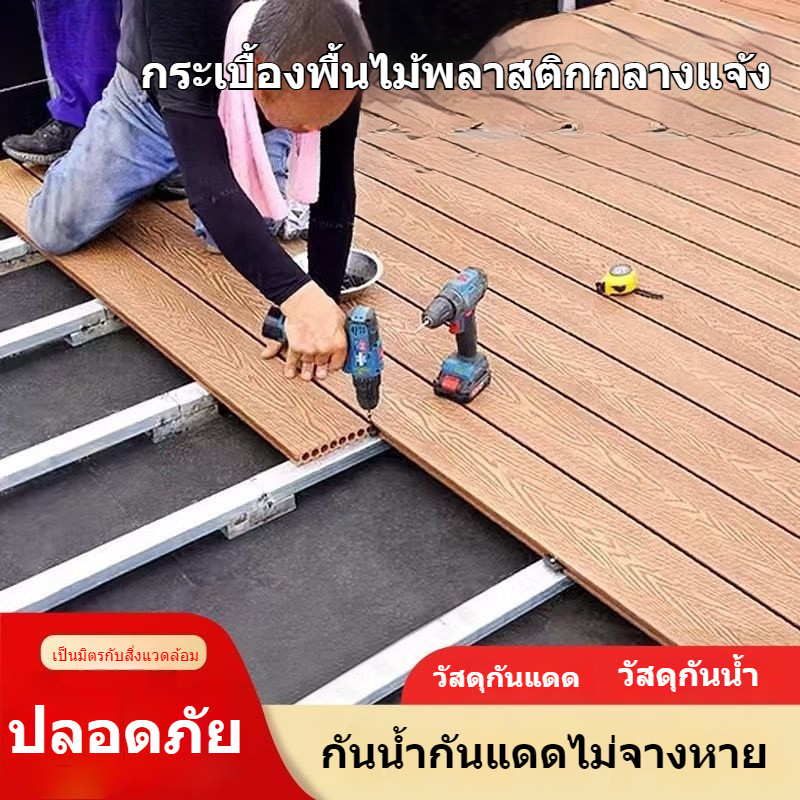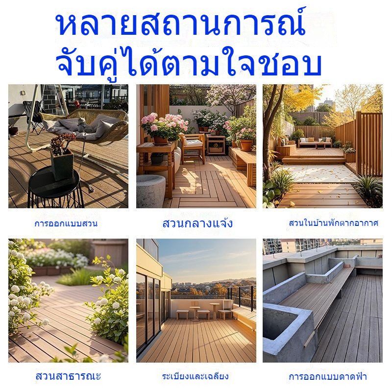 ปูพื้นไม้พลาสติกกลางแจ้ง สวน ลานบ้าน ปูพื้นไม้กันสนิม ระเบียง เฉลียง รุ่นที่สอง ปูพื้นไม้พลาสติกแบบร่วมอัด