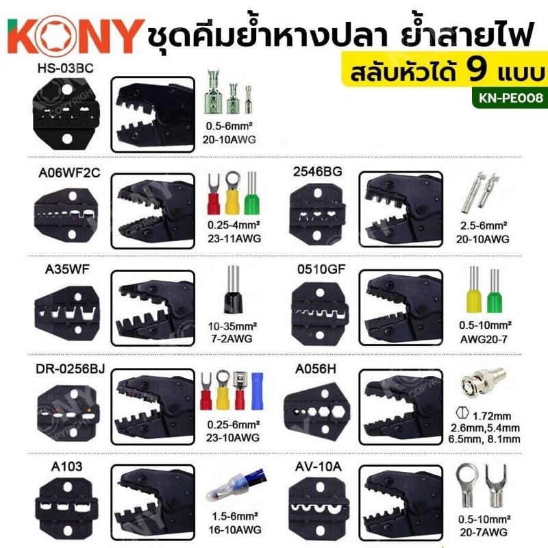 KONY ชุดคีมย้ำหางปลา ปาก 9 แบบ คีมย้ำสายไฟ สลิปต่อสาย แบบสลับหัวได้ KN-PE008