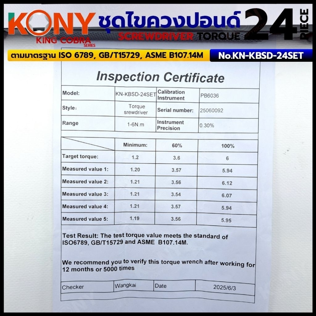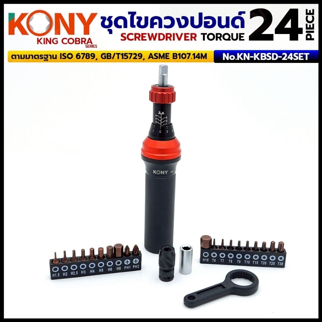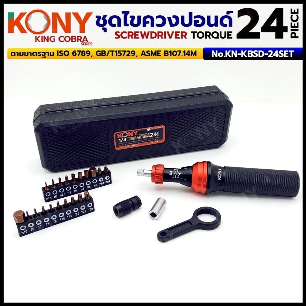 KONY ชุดไขควงปอนด์ 24 ตัว/ชุด แรงบิด 1-6Nm ซีรี่ส์ KING COBRA No.KN-KBSD-24SET