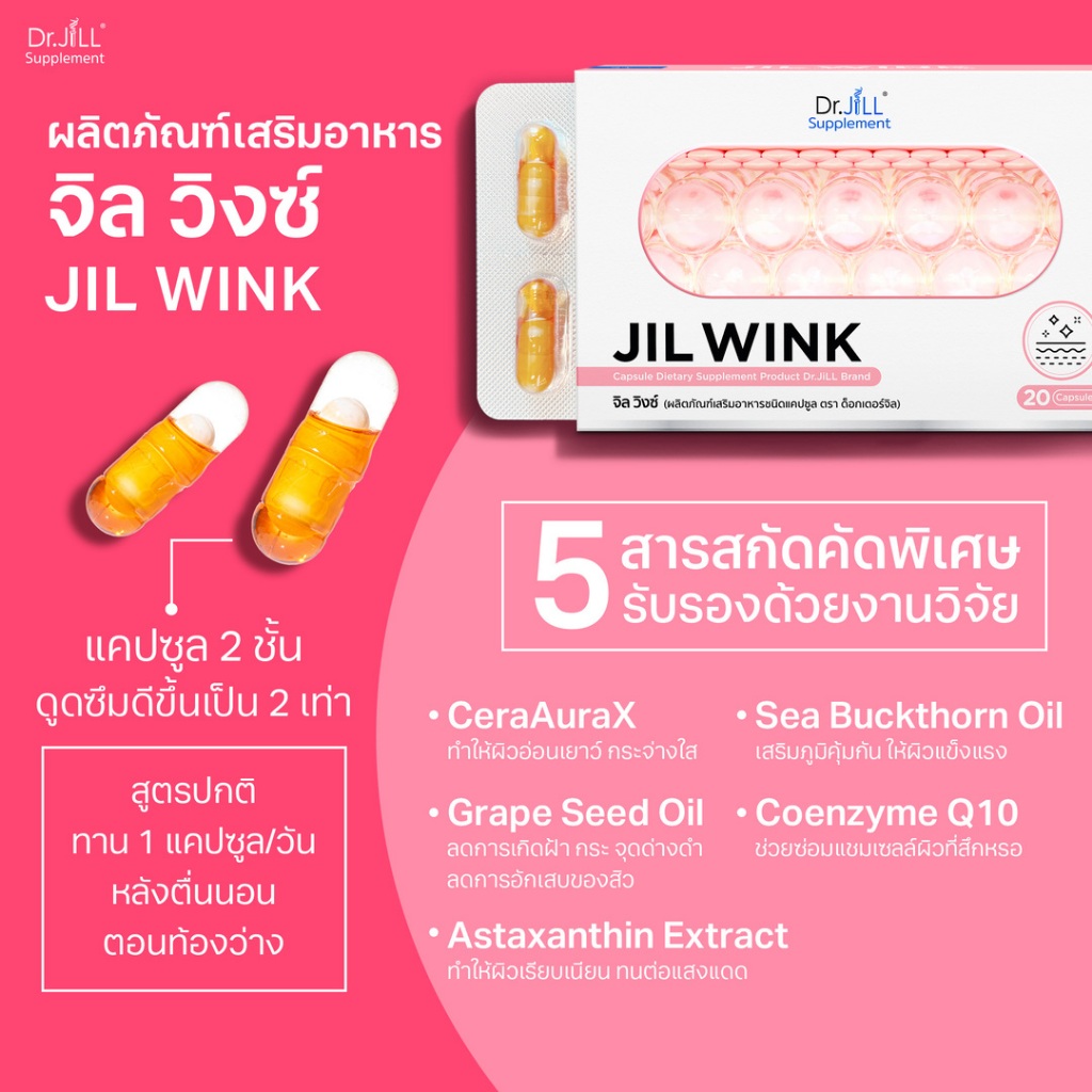 [ร้านค้าทางการ] 2 แถม 1 จิลวิงซ์ JIL WINK อาหารเสริมดูแลผิวจาก Dr.JiLL วิตามินผิวกระจ่างใส ลดเลือนริ้วรอย