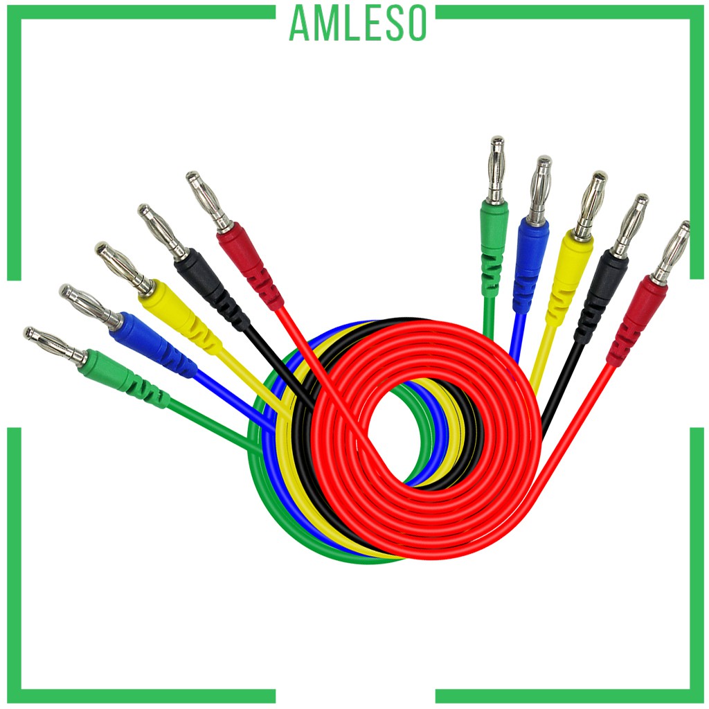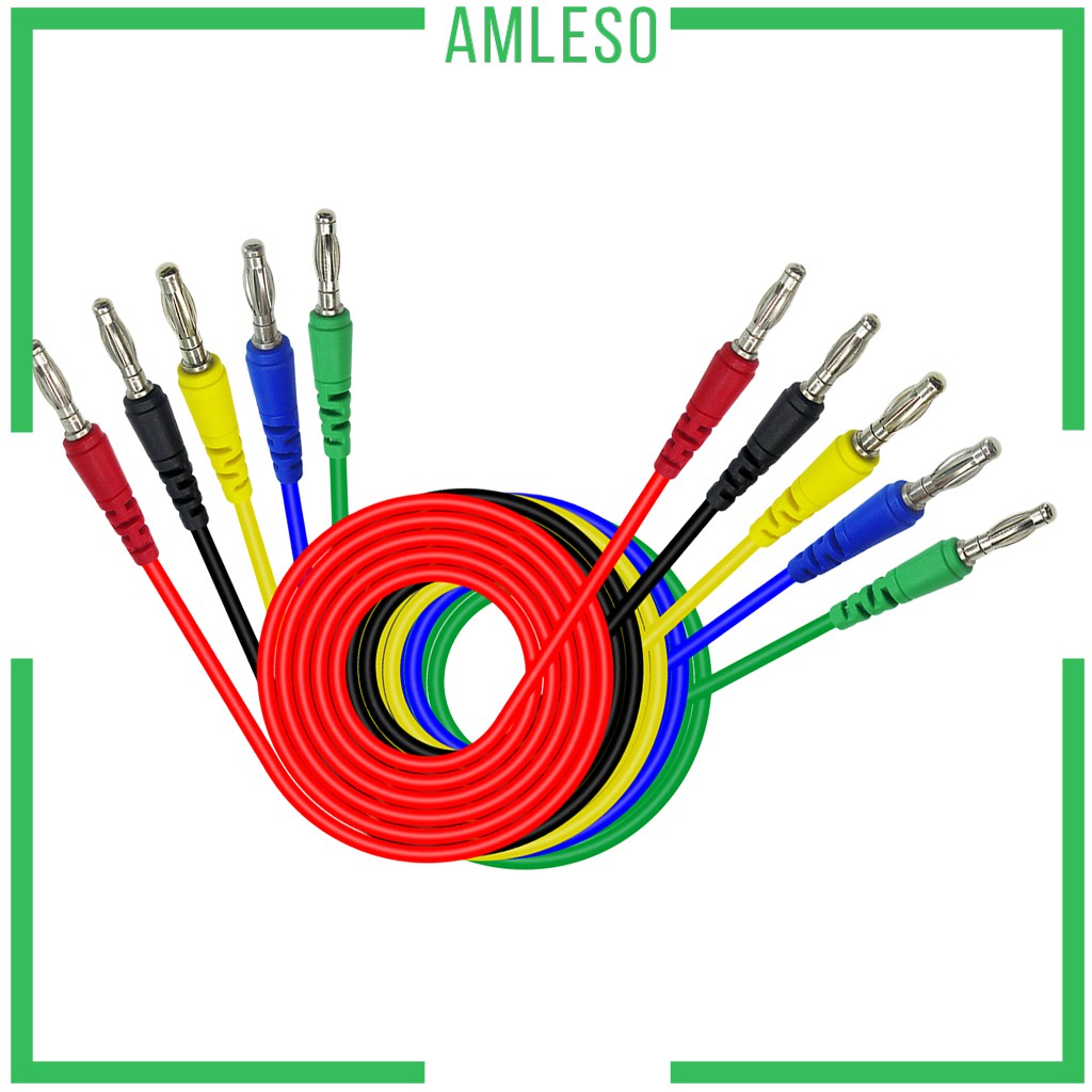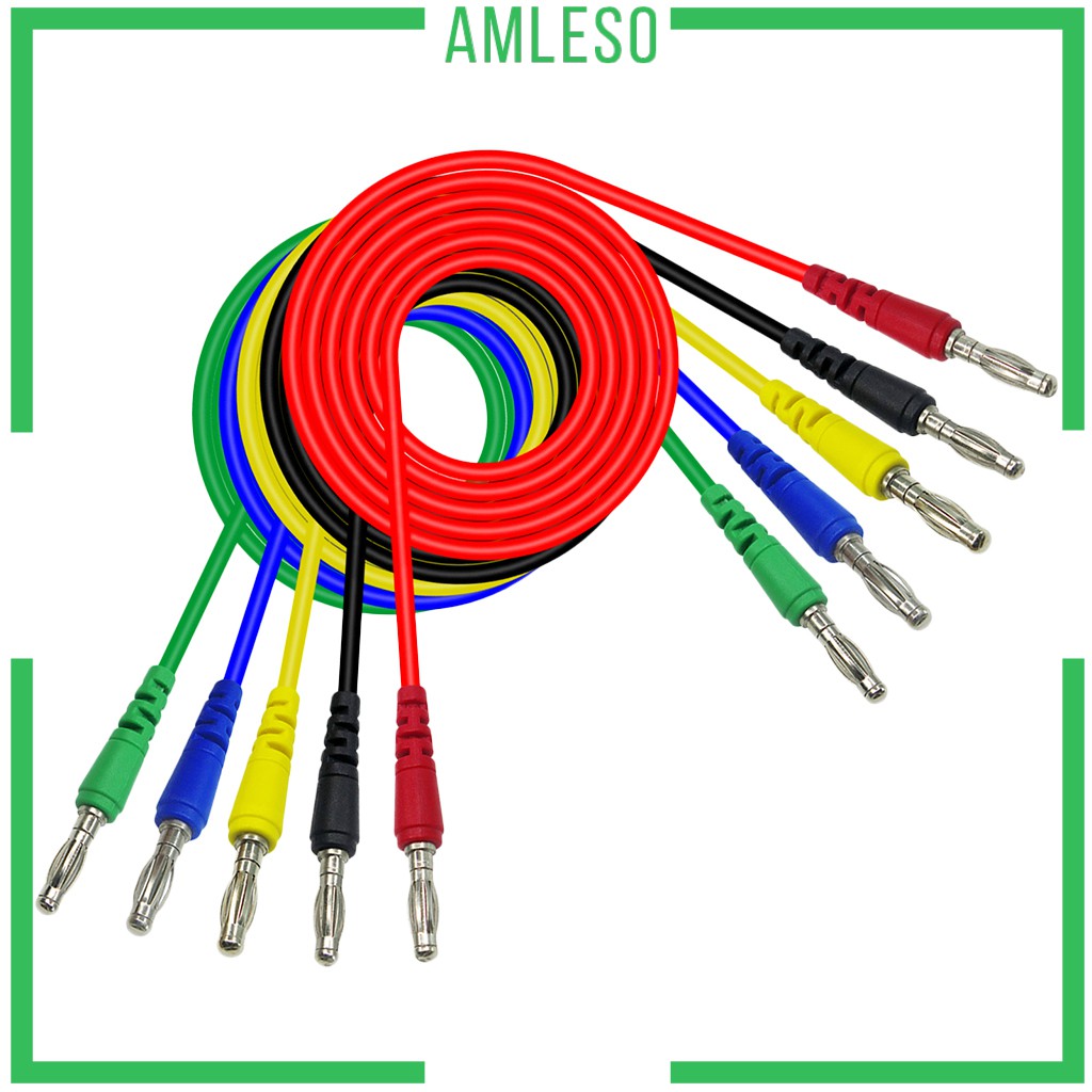 ( Amleso ) 5 ชิ้น / สี 4 มม . Banana To Banana Plug Male To Male ซิลิโคนทดสอบสายไฟ 1 ม .
