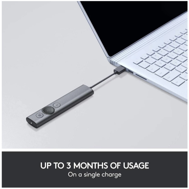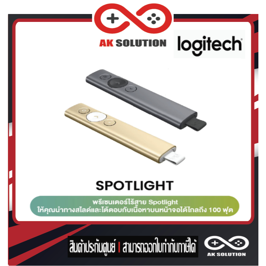 Logitech SPOTLIGHT Presentation Remote (รีโมทเลเซอร์พอยเตอร์นวงกลม ซูมหน้าจอตำแหน่งที่เลือกได้ แบบ spotlight) (แสงสีแดง)