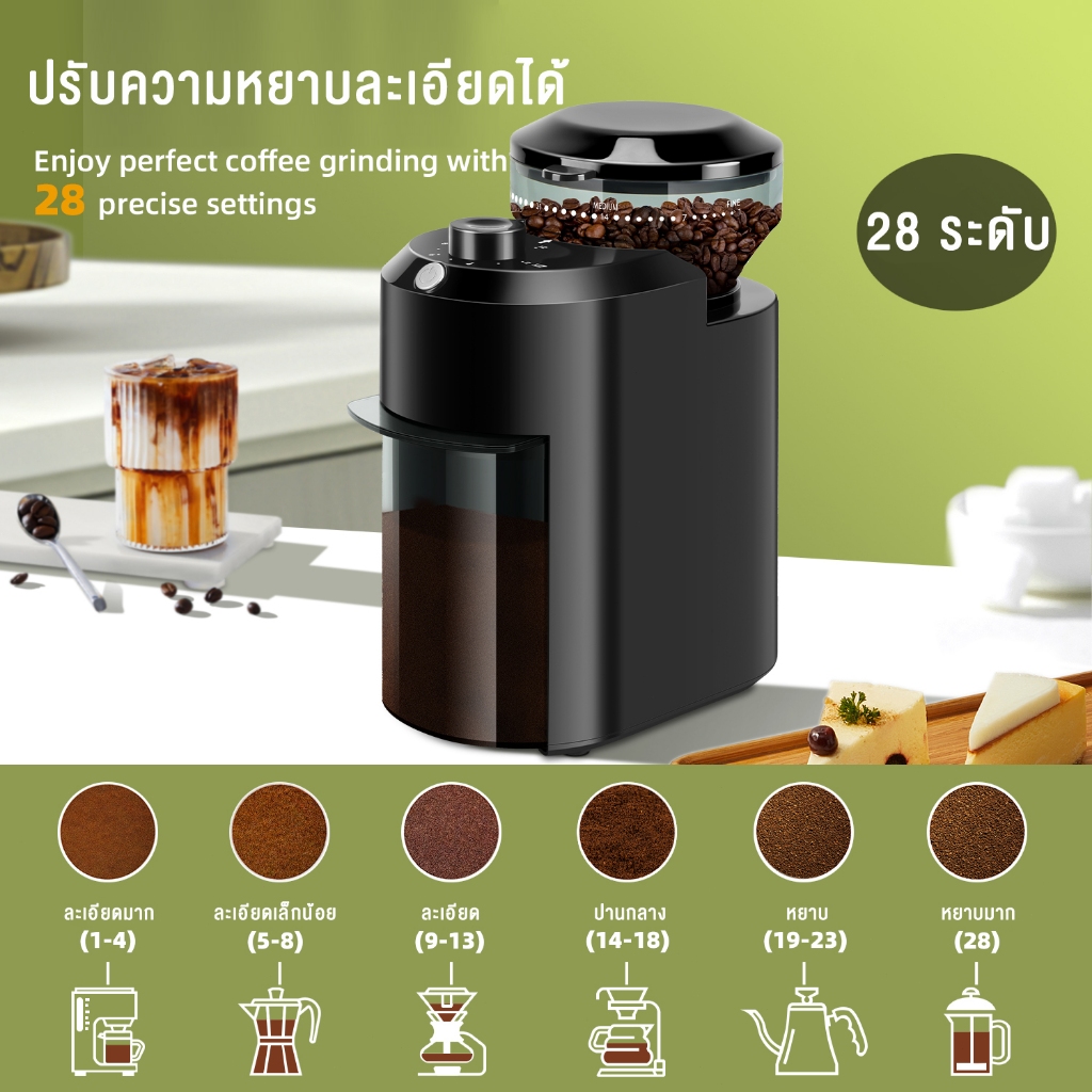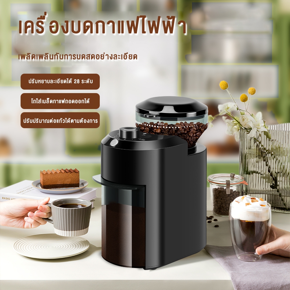 LENODI Coffee Grinder เครื่องบดกาแฟ เครื่องบดเมล็ดกาแฟ ไฟฟ้าอัตโนมัติ ใช้งานง่าย ปรับ 28 เกียร์
