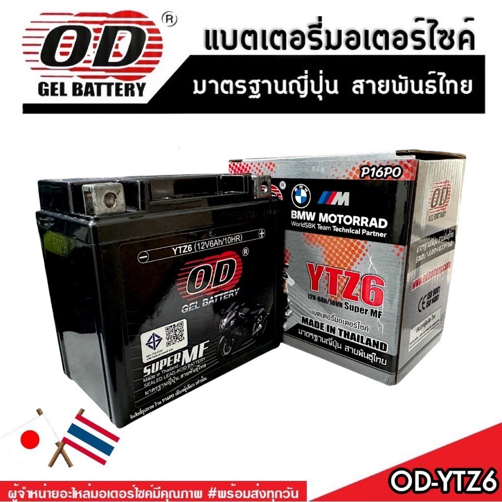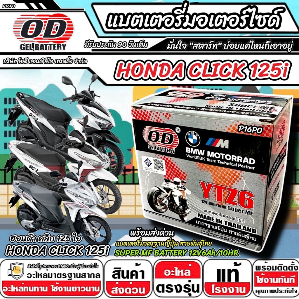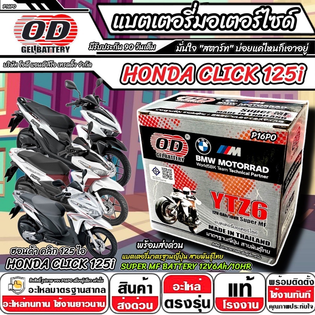 แบตเตอรี่ Honda Click 125i มาตราฐานญี่ปุ่น ฮอนด้า คลิก 125 ไอ แบตเตอรี่แห้ง OD-YTZ6 12V/6Ah CLICK125 อย่างดี SP16