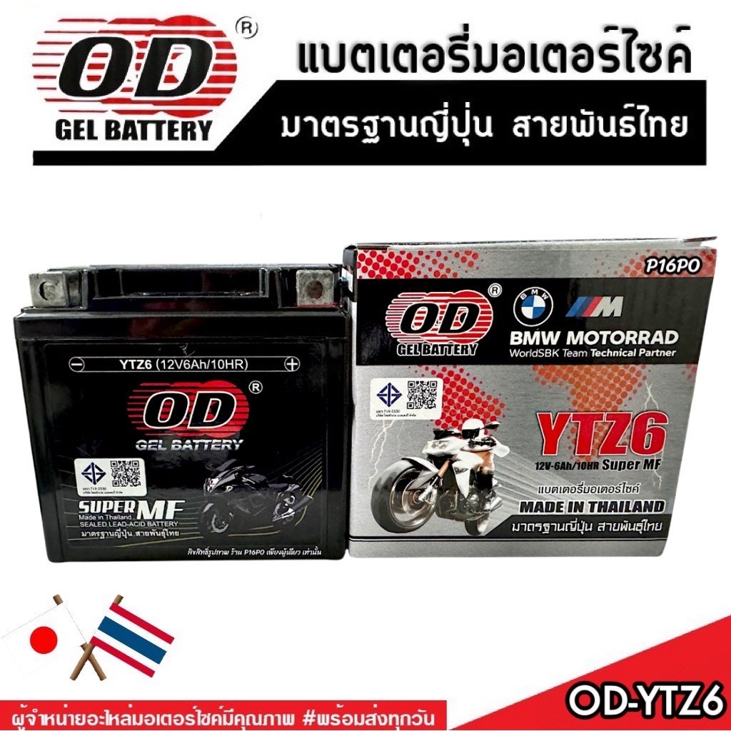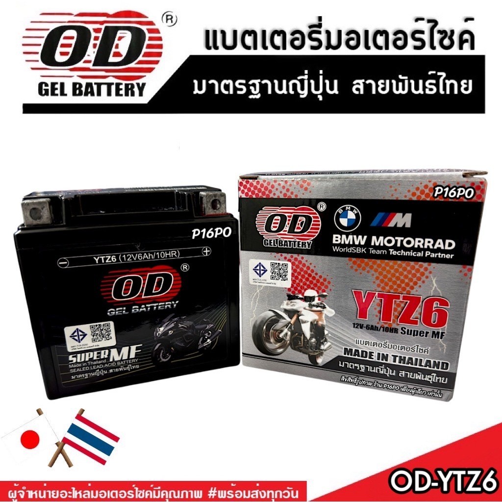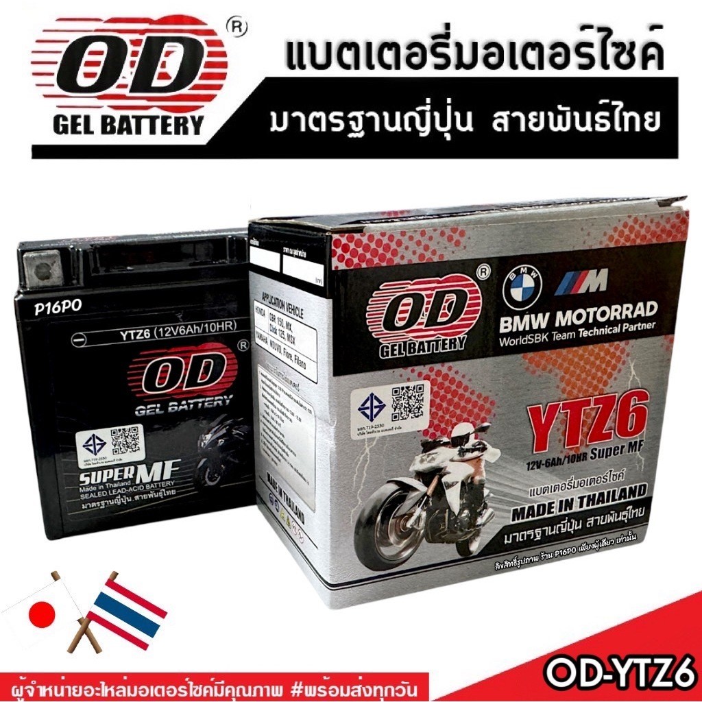 แบตเตอรี่ Honda Click 125i มาตราฐานญี่ปุ่น ฮอนด้า คลิก 125 ไอ แบตเตอรี่แห้ง OD-YTZ6 12V/6Ah CLICK125 อย่างดี SP16