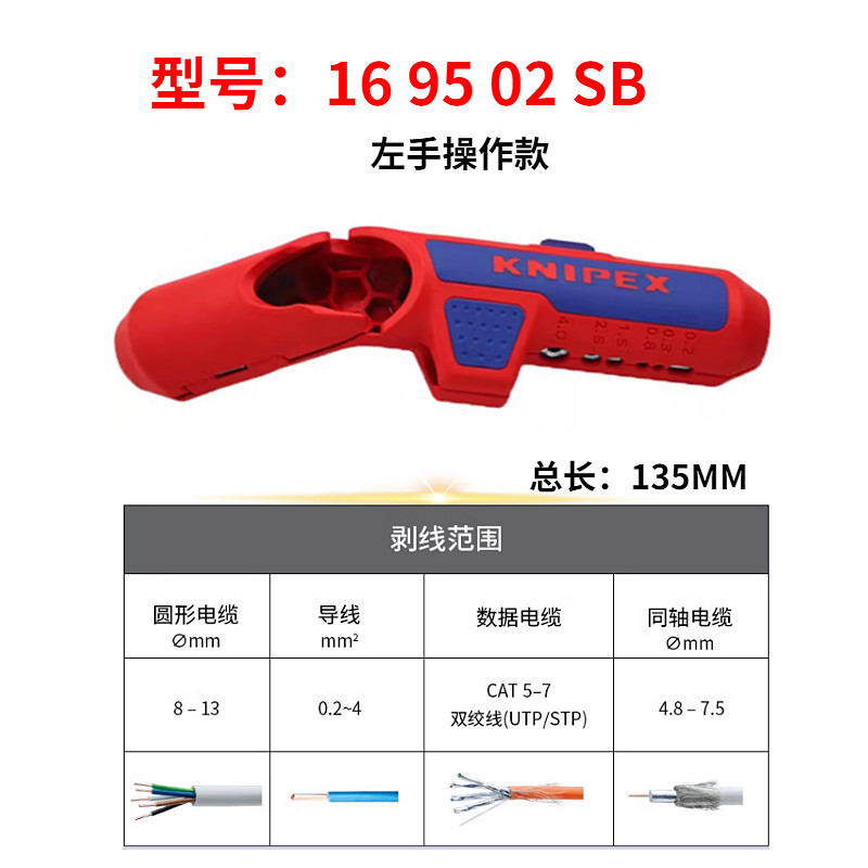 เยอรมัน KNIPEX Wire Stripper สายเคเบิลโคแอกเซียลเครื่องมือปอกสายไฟคีมปอก Sheath คีมปอกสายไฟ