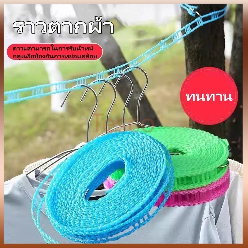 Tesco กันลื่นและกันลมเชือกตากผ้าสไตล์รั้วเชือกตากผ้าเชือกตากผ้าเชือกตากผ้าเดินทางกลางแจ้งเชือกแขวนเสื้อผ้า