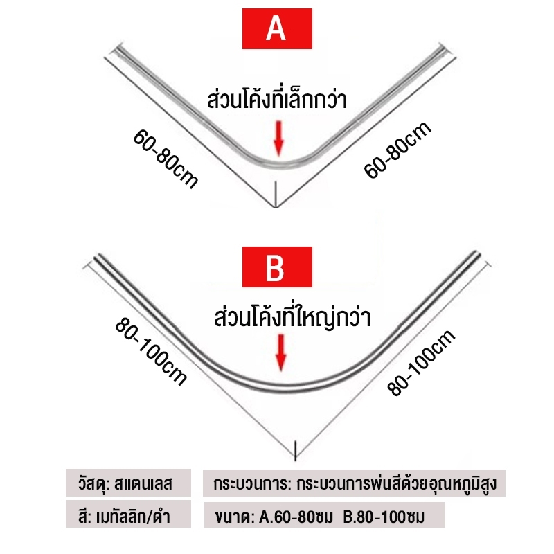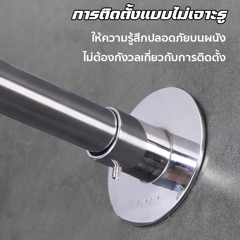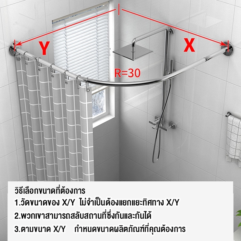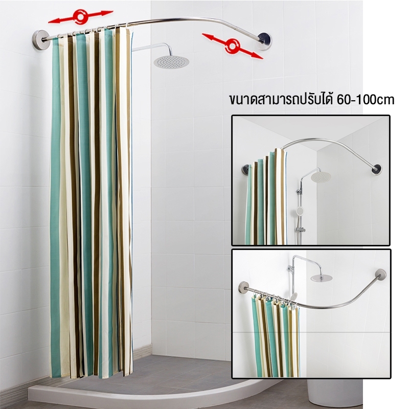 BananaHomeLiving ราวม่านอาบน้ำโค้ง 304ท่อสแตนเลส ยืดหดได้ การติดตั้งโดยไม่ต้องเจาะ