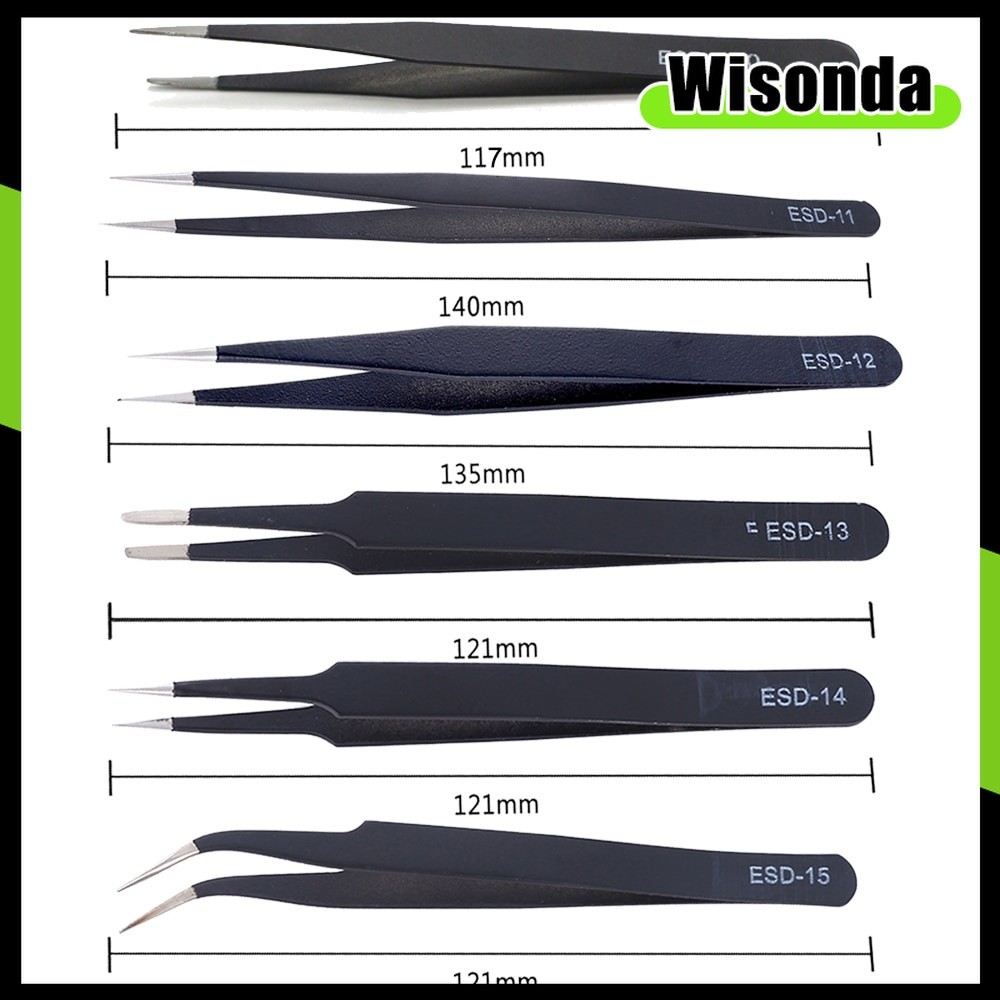 6 ชิ้น แหนบ ESD ป้องกันไฟฟ้าสถิตชุดตรงโค้งหัตถกรรมอิเล็กทรอนิกส์ Jewellery