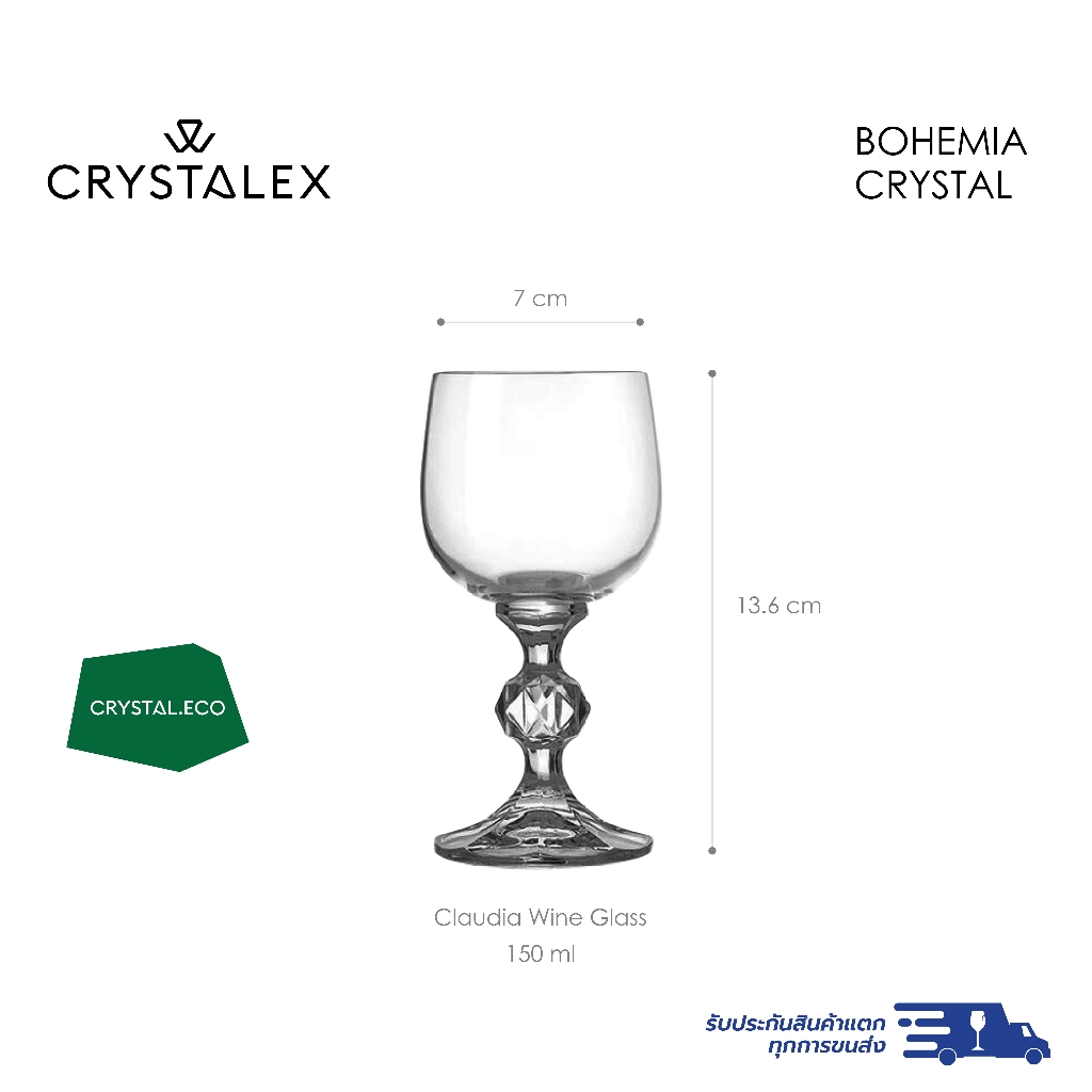 แก้วไวน์ แก้วแชมเปญ แก้วคริสตัล Crystalex Claudia