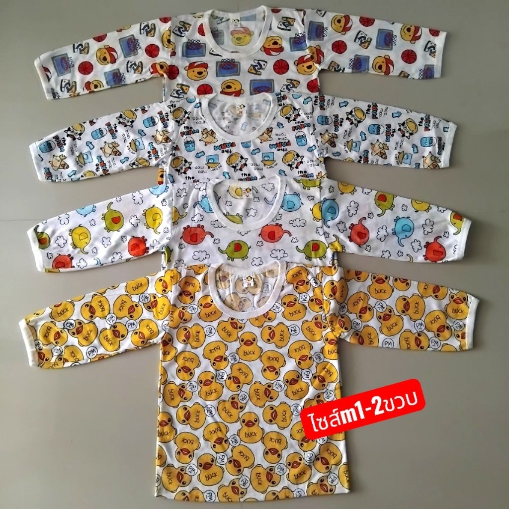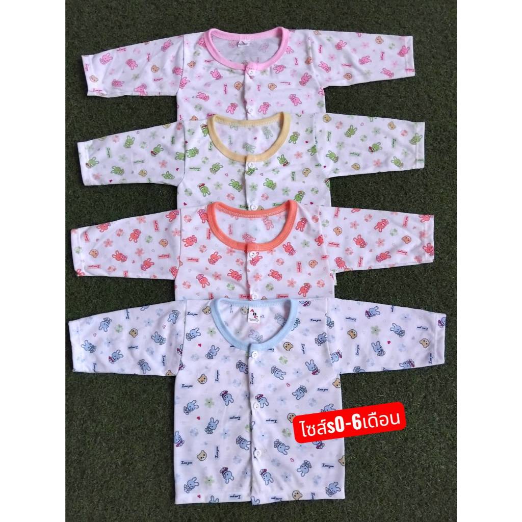 (แพ็ค4ตัว)เสื้อแขนยาวเด็กอ่อน (แบบกระดุมหน้าและแบบสวมเด็ก) ไซส์S เด็กแรกเกิด-6เดือน (แบบลายเสื้อเปลี่ยนไปตามรอบการผลิ