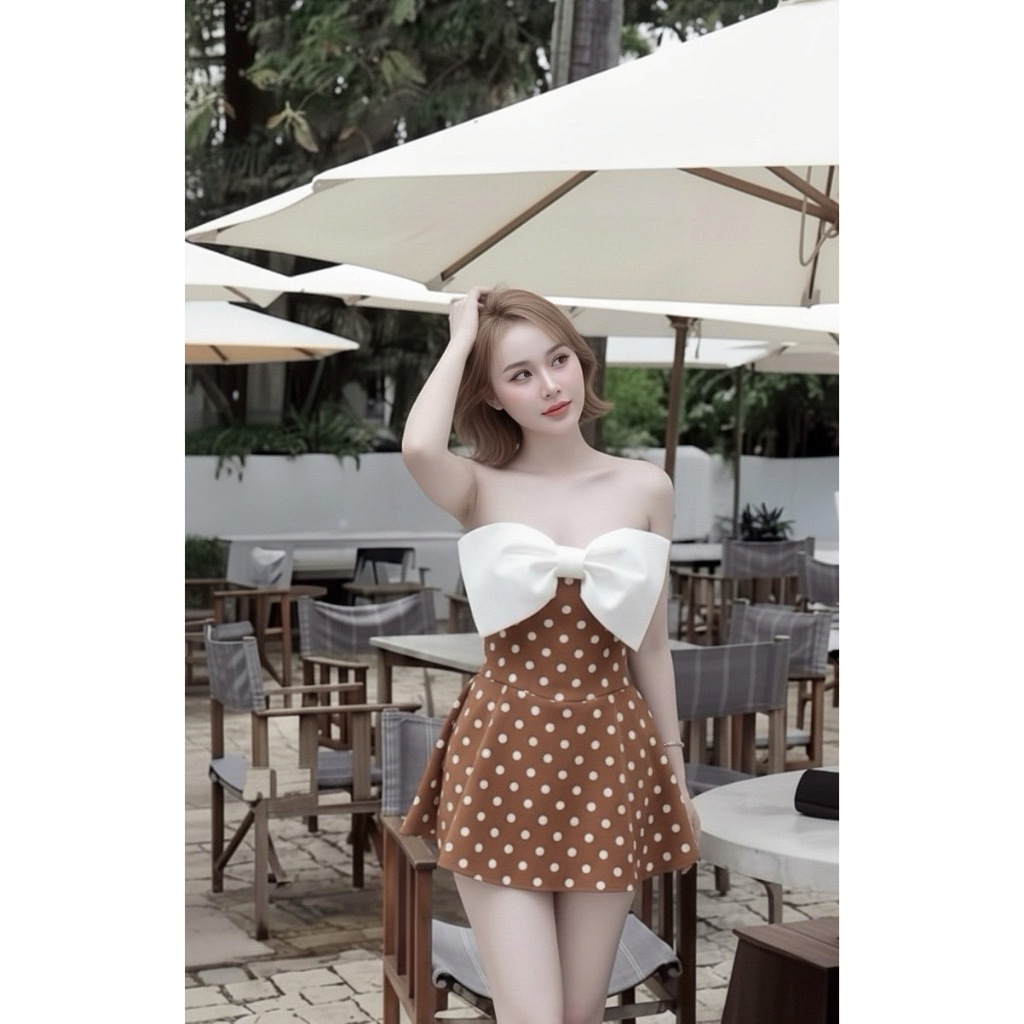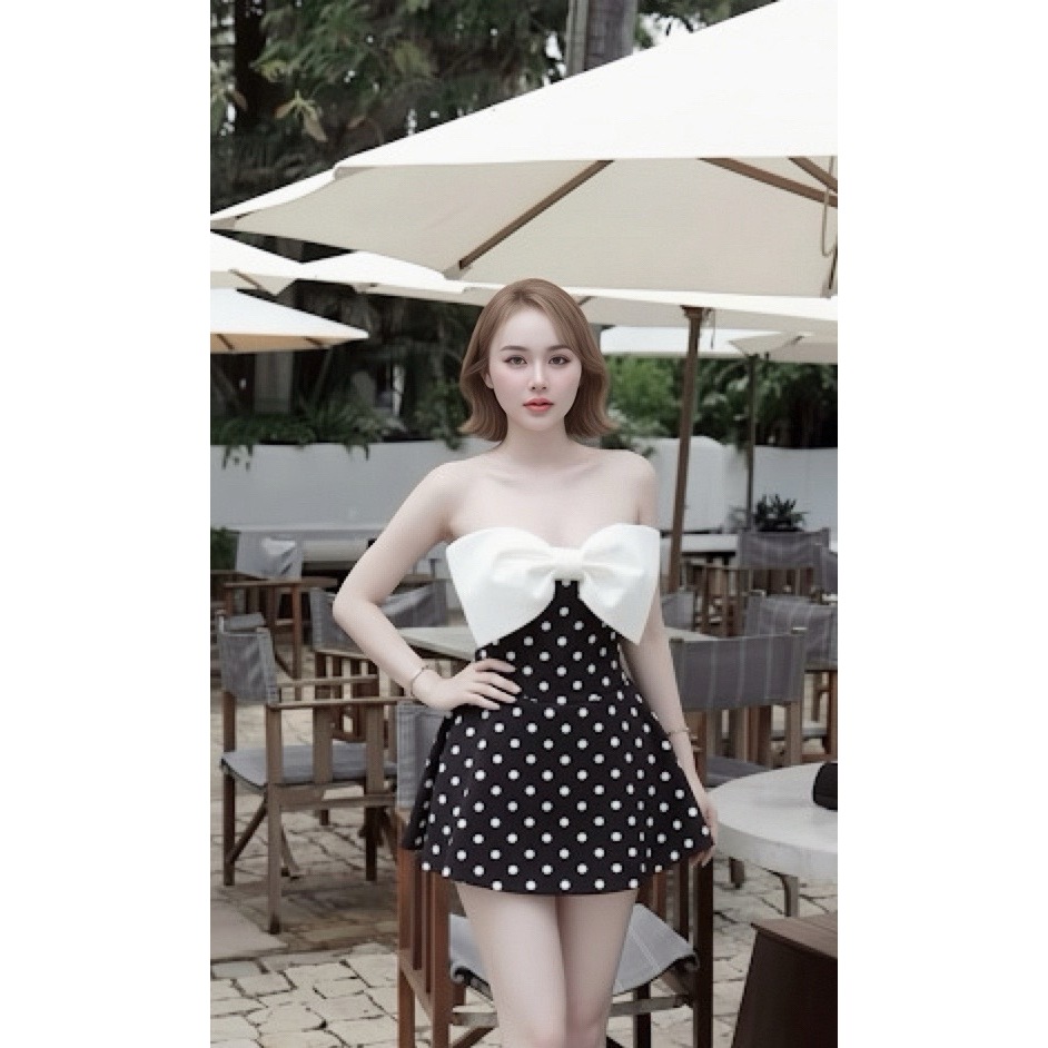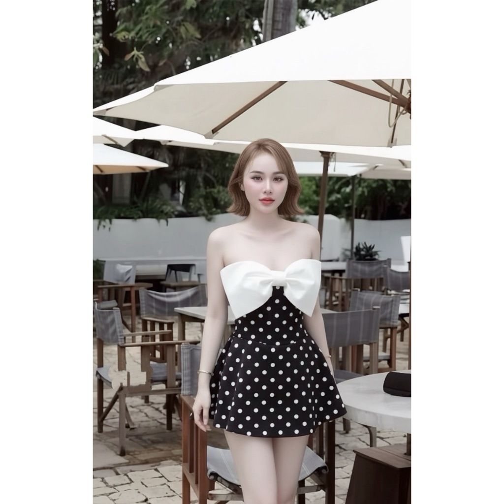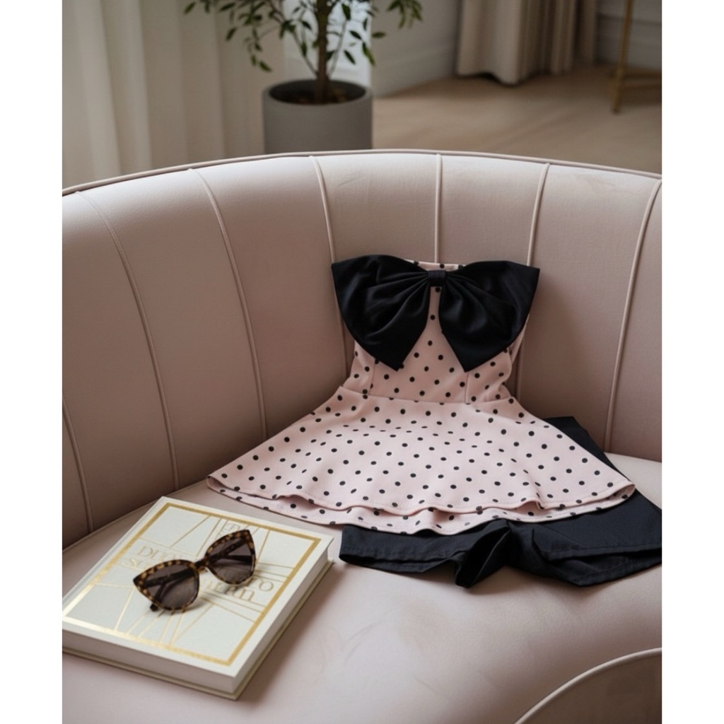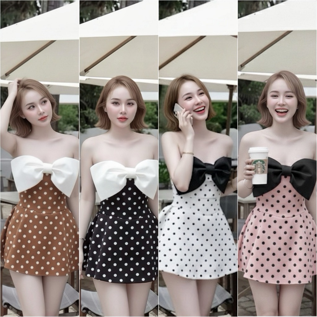 SET-133 ชุดโบว์โพกาดอท ชุดเซ็ต 2 ชิ้น เกาะอกโบว์ยักษ์ น่ารักมาก