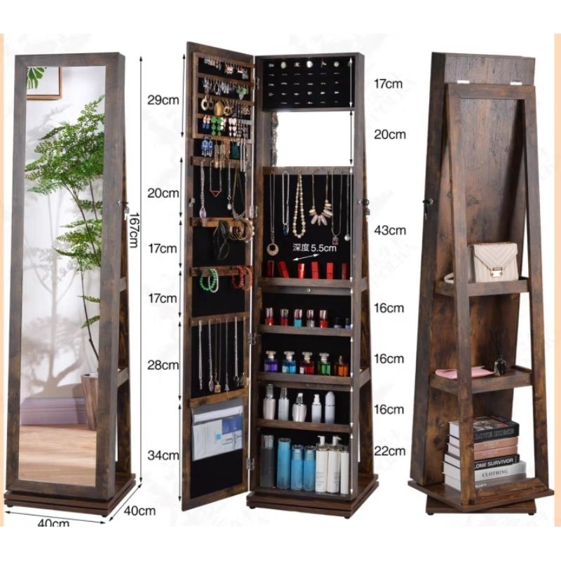 ตู้กระจกเก็บเครื่องประดับ มีล้อเลื่อน กุญแจล็อค FD5780