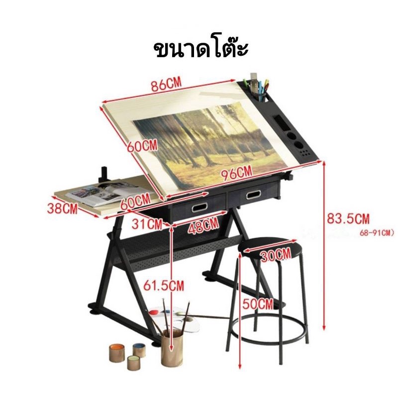 โต๊ะเขียนแบบ GLASS-T โต๊ะดร๊าฟ ปรับมุมได้ถึง 80องศา ปรับระดับความสูงได้ รองรับกระดาษ a1