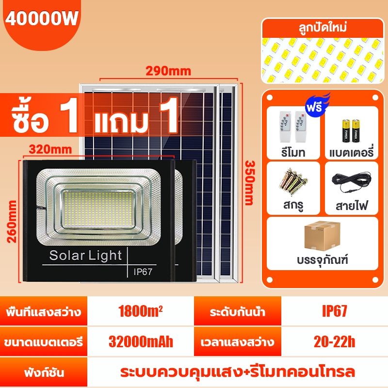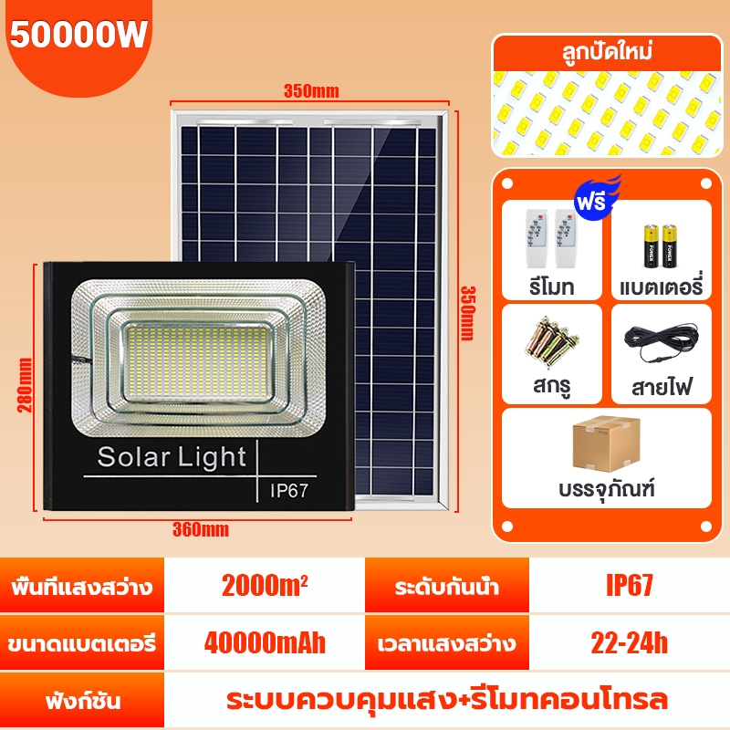 SUPPOU【ซื้อ 1 แถม 1】ไฟโซล่าเซลล์ 50000W โซล่าเซลล์ ไฟอัตโนมัติ ไฟถนน แสงสว กันน้ำและกันฟ้าผ่า ค่าไฟฟรีชาร์จไฟตอนกลางวัน