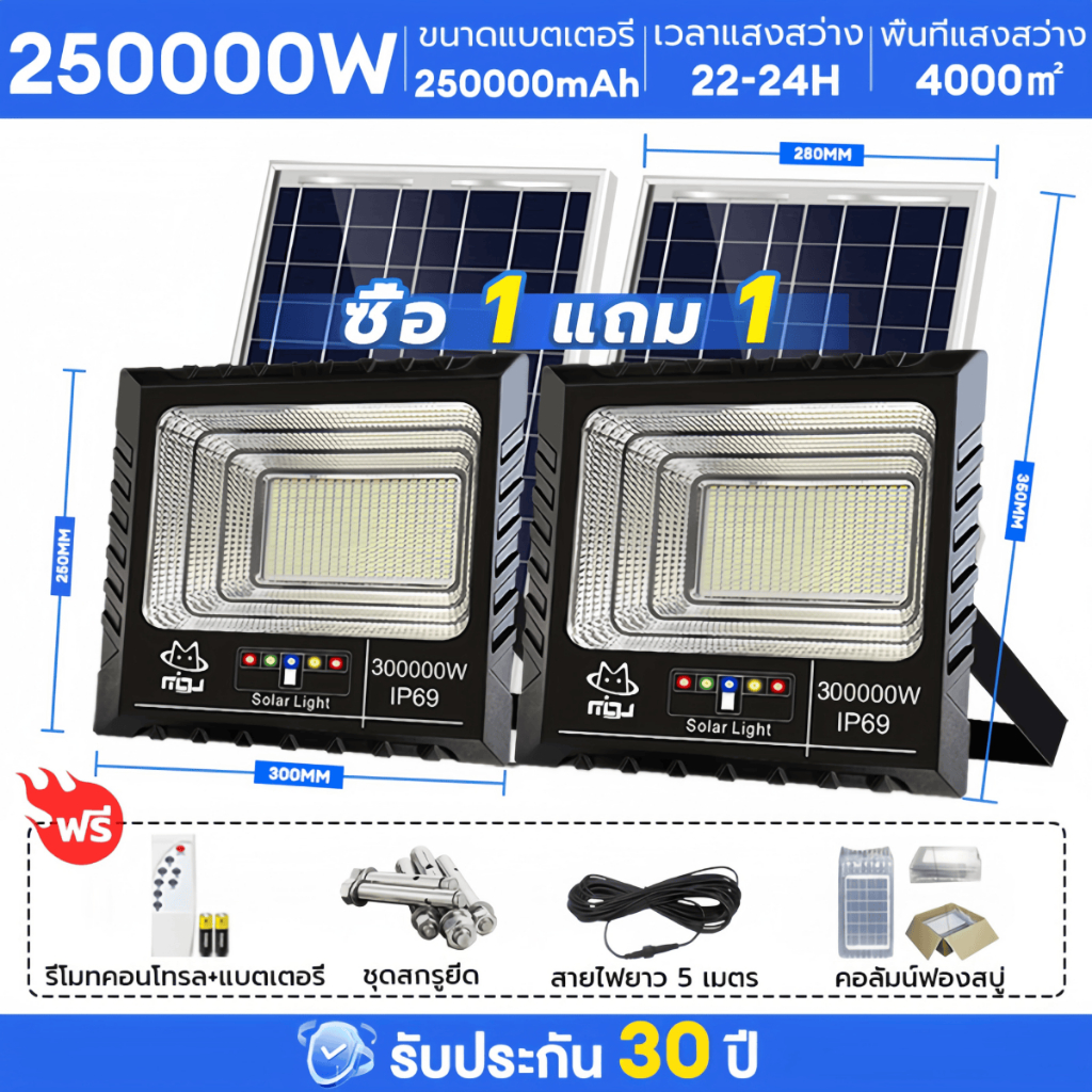 SUPPOU ไฟโซล่าเซลล์ 300000W โซล่าเซลล์ ไฟอัตโนมัติ ไฟถนน แสงสว กันน้ำและกันฟ้าผ่า ค่าไฟฟรีชาร์จ สว่างเมื่อฟ้ามืด