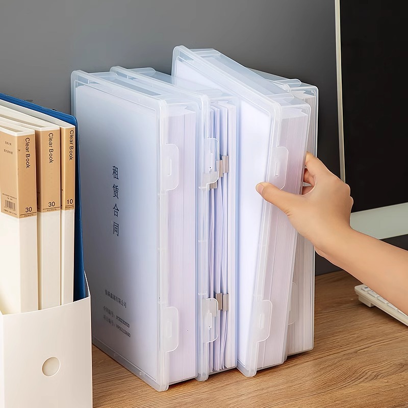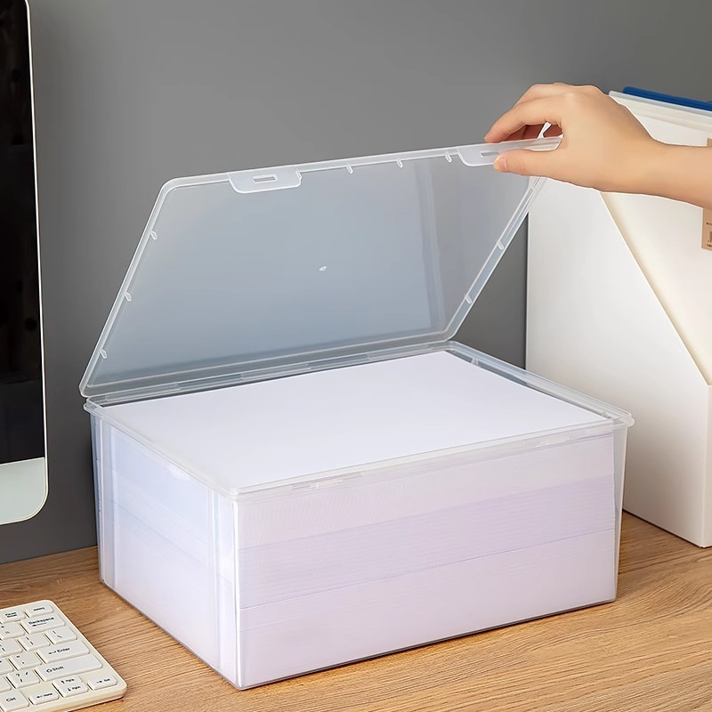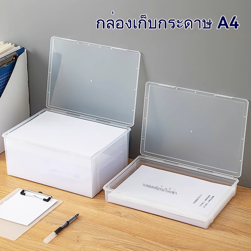 กล่องเก็บเอกสาร A4 พลาสติกใส กันฝุ่น สำหรับสำนักงาน กล่องเก็บเอกสารแบบสแต็กได้ เก็บของได้มาก