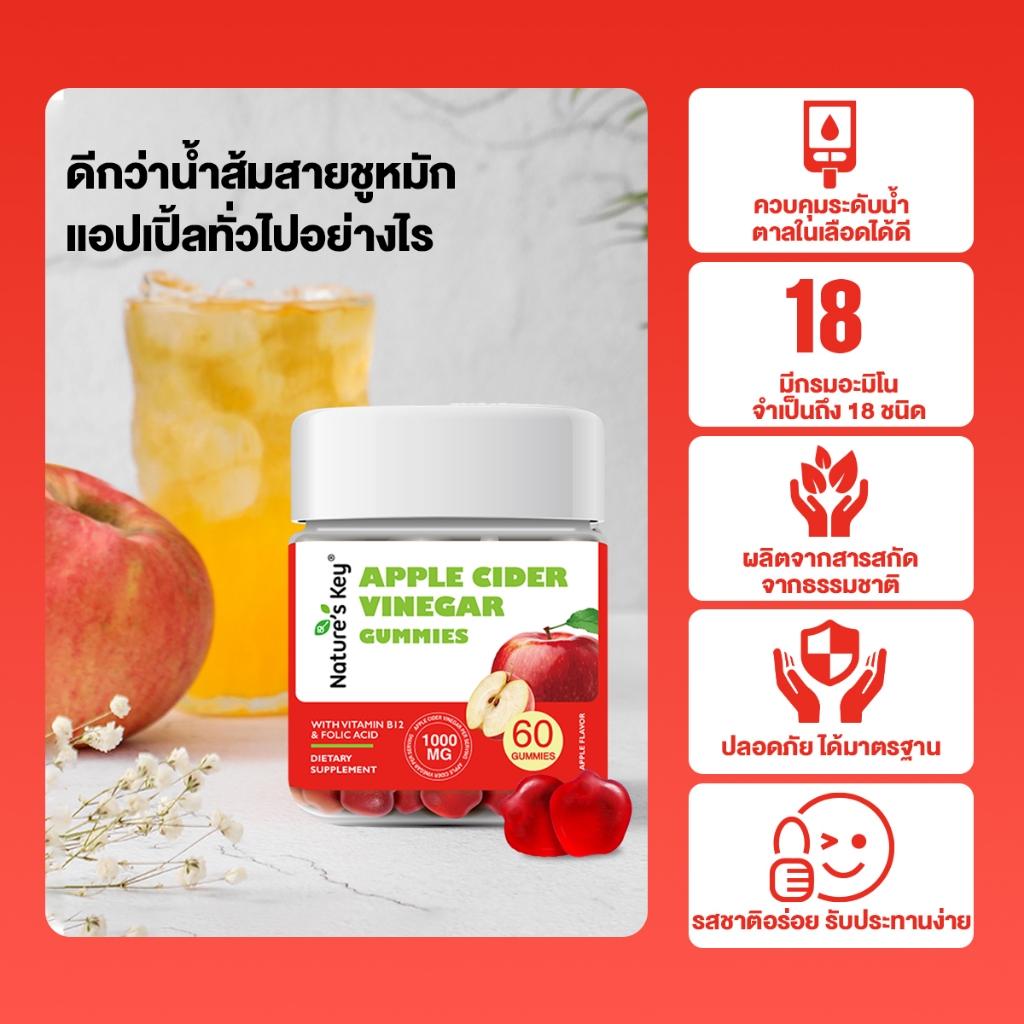 [พร้อมส่ง]Nature’s Key Apple Cider Vinegar Gummies ระบบย่อยอาหารดี บำรุงลำไส้ อร่อย ไม่เปรี้ยวจี๊ด