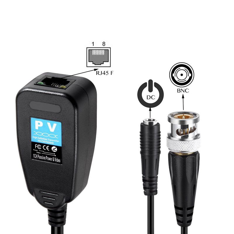 Hd-cvi/tvi/ahd Passive Video Balun พร้อมขั้วต่อไฟและ RJ45 CAT5 Data Trans
