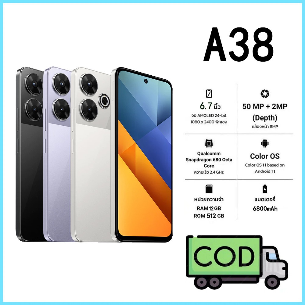 สมาร์ทโฟน A38 5G สุดฮอต 12GB + 512GB 6.7 นิ้ว รองรับ 2 ซิมการ์ด โทรศัพท์ Android COD