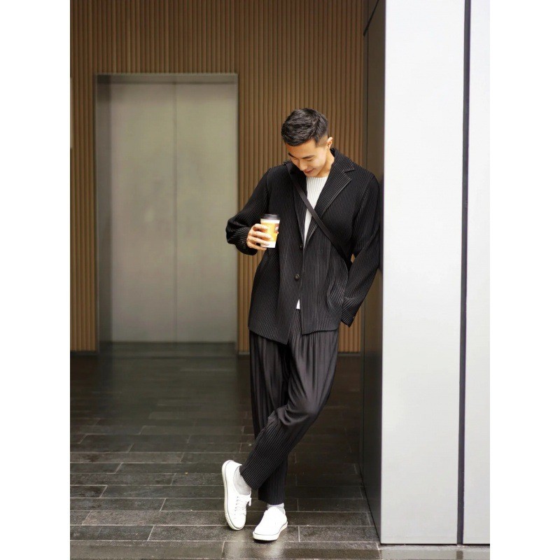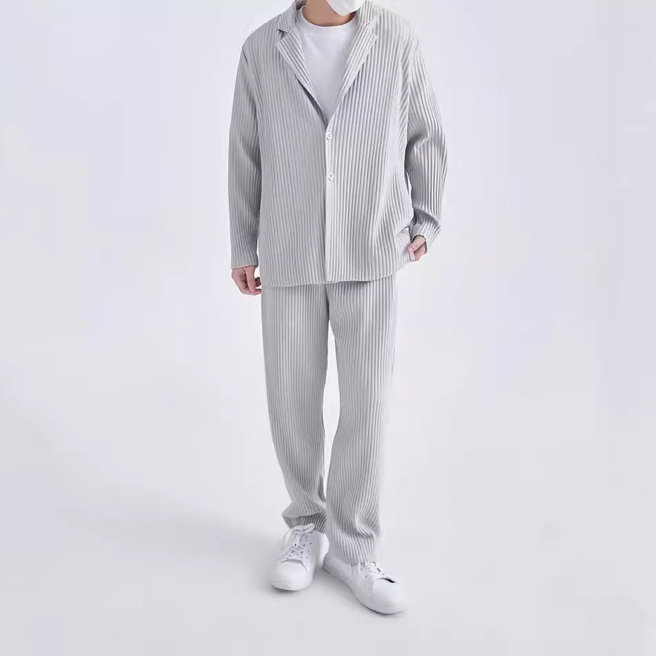 มิยาเกะ ชุดสูทจีบแขนยาวเสื้อแจ็คเก็ตผู้ชายฤดูใบไม้ร่วงปกระดับไฮเอนด์หลวมสบายๆสูทผู้ชาย เจดี201