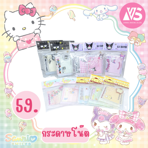 [คละลาย 2 ชิ้น 39] กระดาษโน๊ตซองซิป ลิขสิทธิ์แท้ ลาย Sanrio_VS License Trading