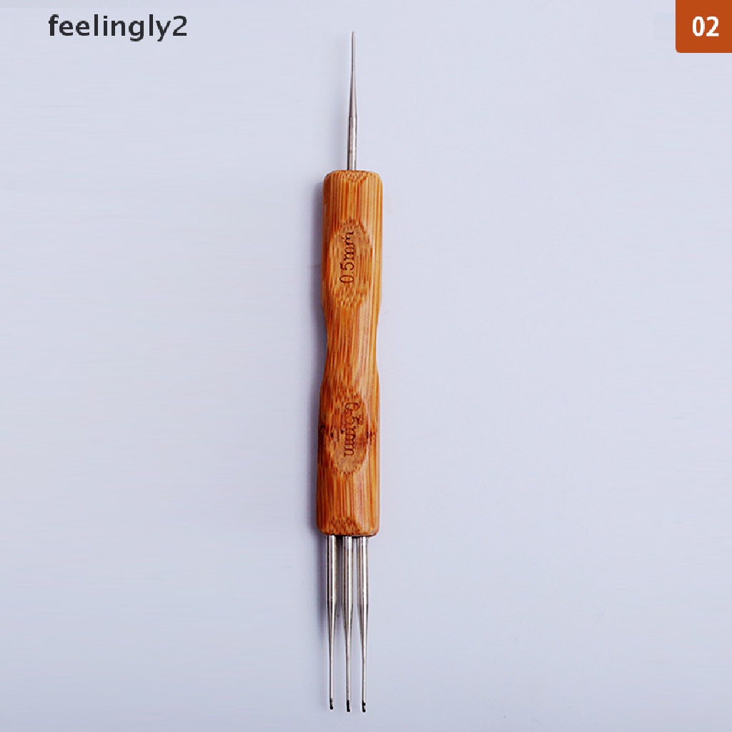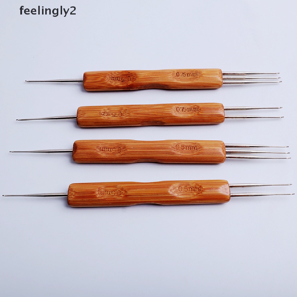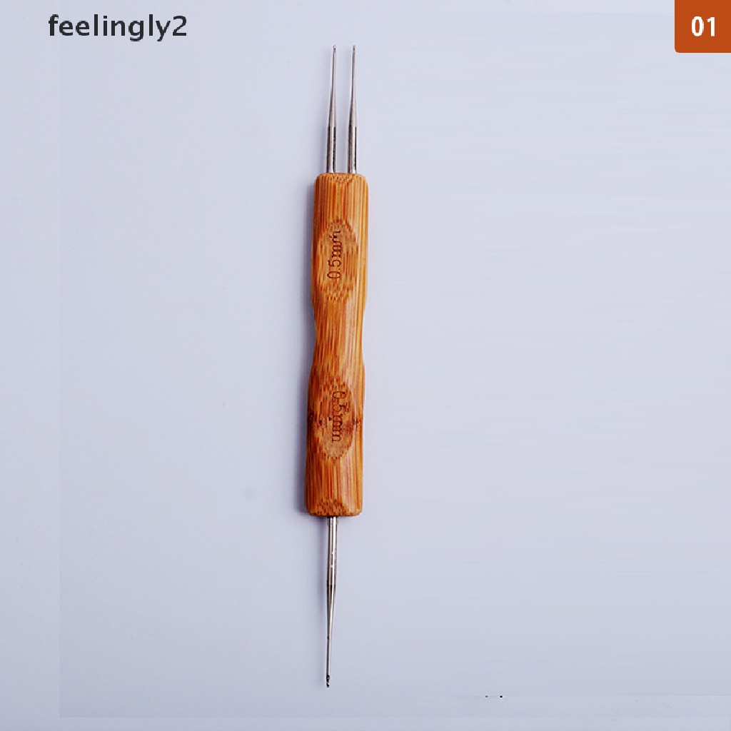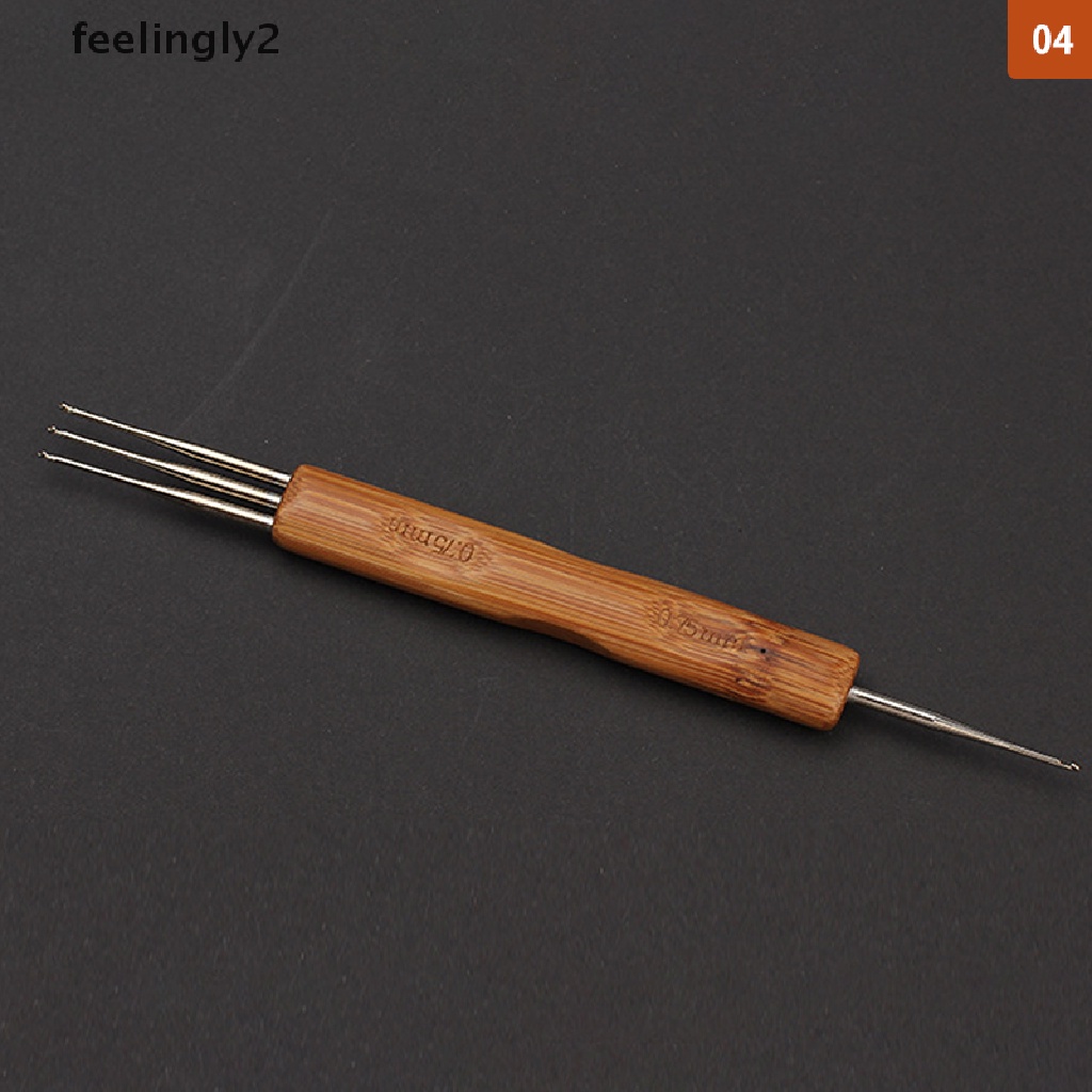 [รู้สึก] เข็มตะขอด้ามไม้ไผ่โครเชต์แบบล็อคสองชั้นสําหรับทรงผม Dreadslock