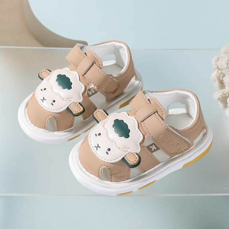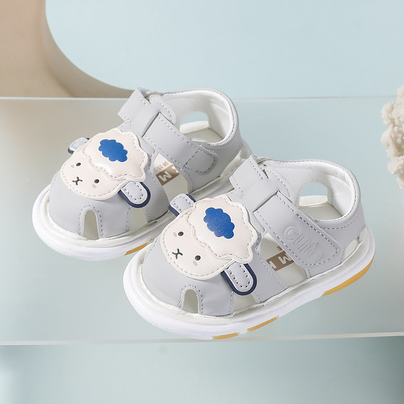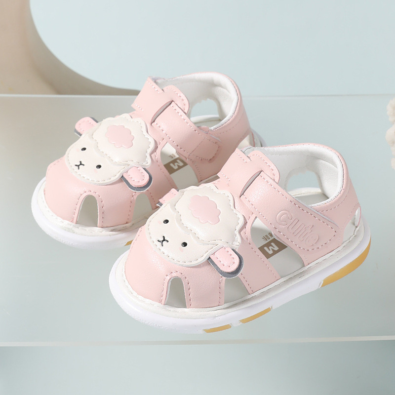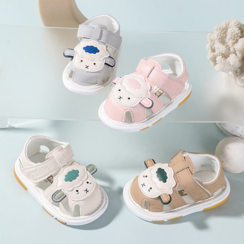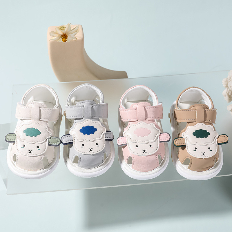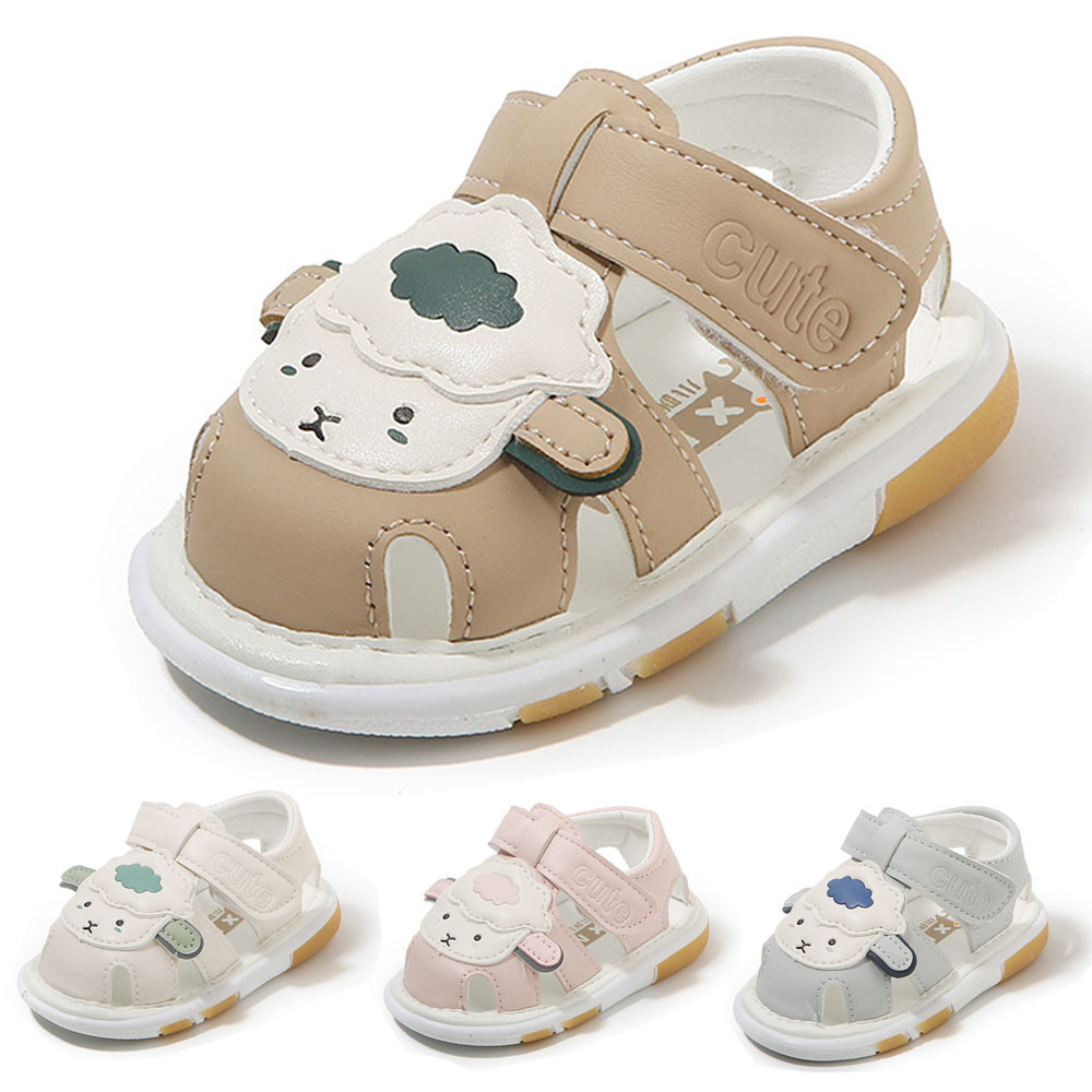 ใหม่ล่าสุดรองเท้าเด็กการ์ตูนแกะเด็กวัยหัดเดินชายหญิงรองเท้าแตะพร้อมเสียงฤดูร้อนนุ่มป้องกันการลื่นรองเท้าวอล์คเกอร์