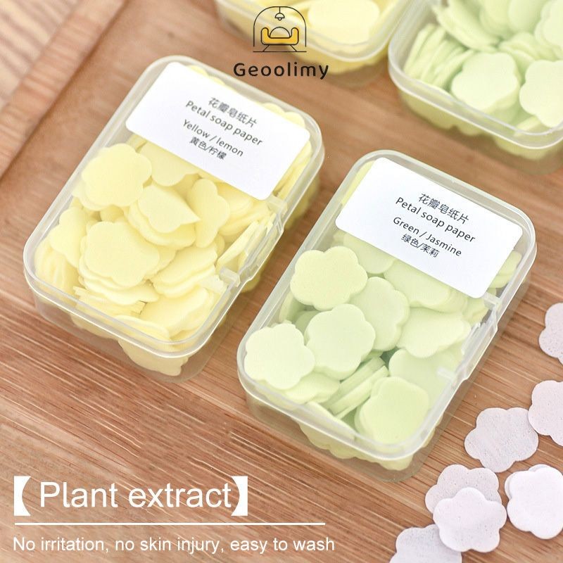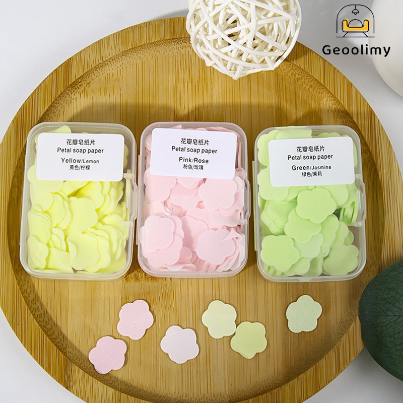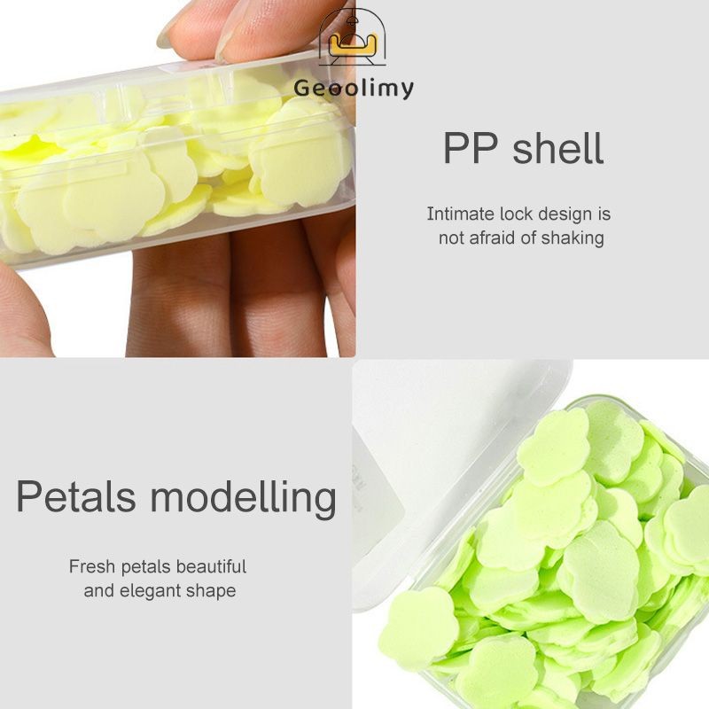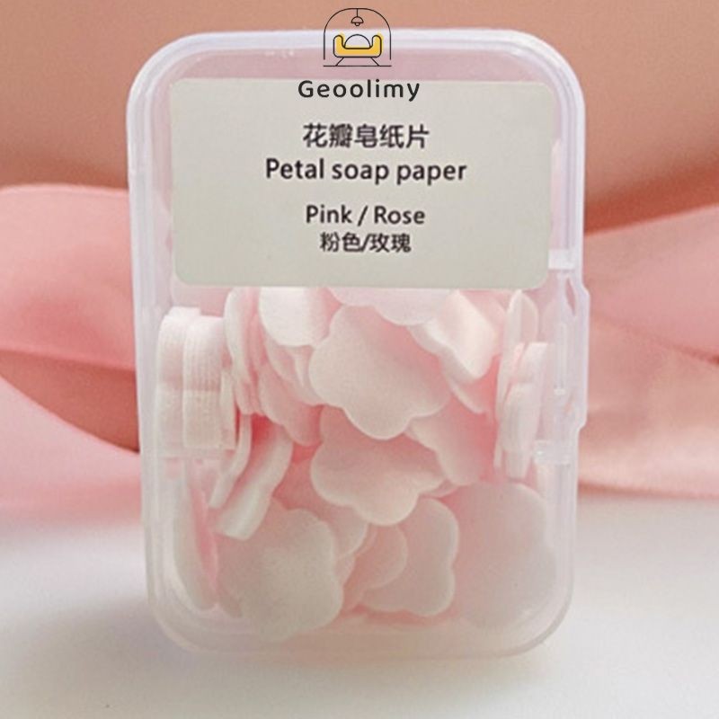 เม็ดสบู่กลีบดอกไม้แบบใช้แล้วทิ้ง ชิ้นกระดาษสบู่รูปทรงดอกไม้ขนาดมินิใช้แล้วทิ้ง แบบพกพากล็ดสบู่ ✨Geoo