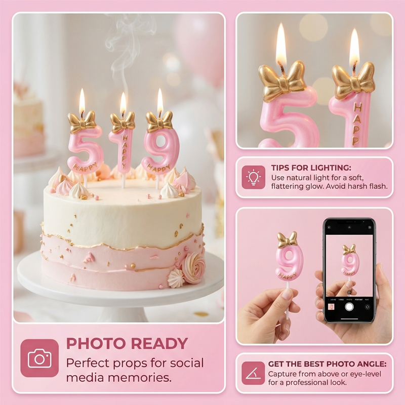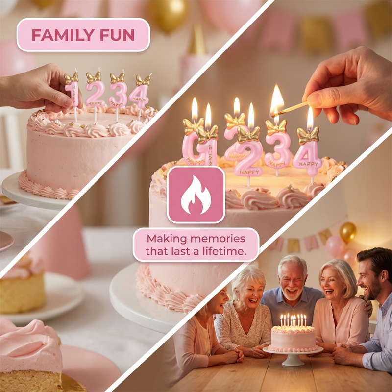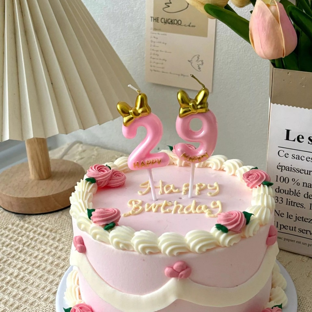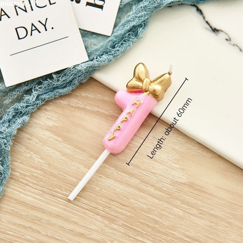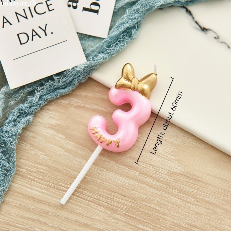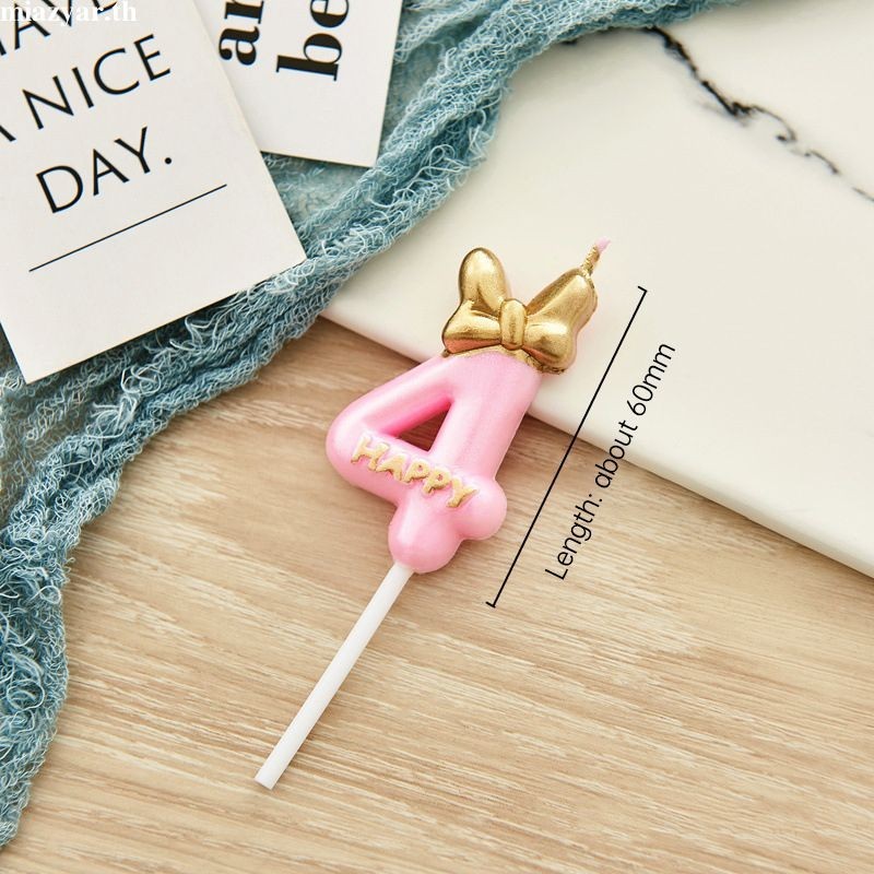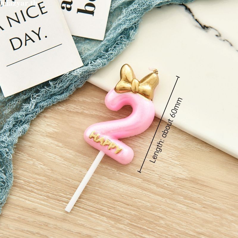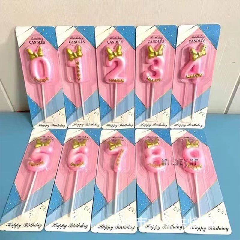 😍COD เทียนวันเกิด เทียนโบว์ สีชมพูน่ารัก เบอร์ 0-9 สําหรับตกแต่งเค้กวันเกิด(ส่งจากประเทศไทย)