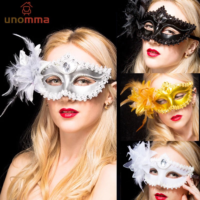 🎈หน้ากากแฟนซี ขอบลูกไม้ หน้ากาก รูปขนนก ดอกไม้ ประดับเพชร สําหรับเต้นรํา ปาร์ตี้ งานแต่งงาน unomma