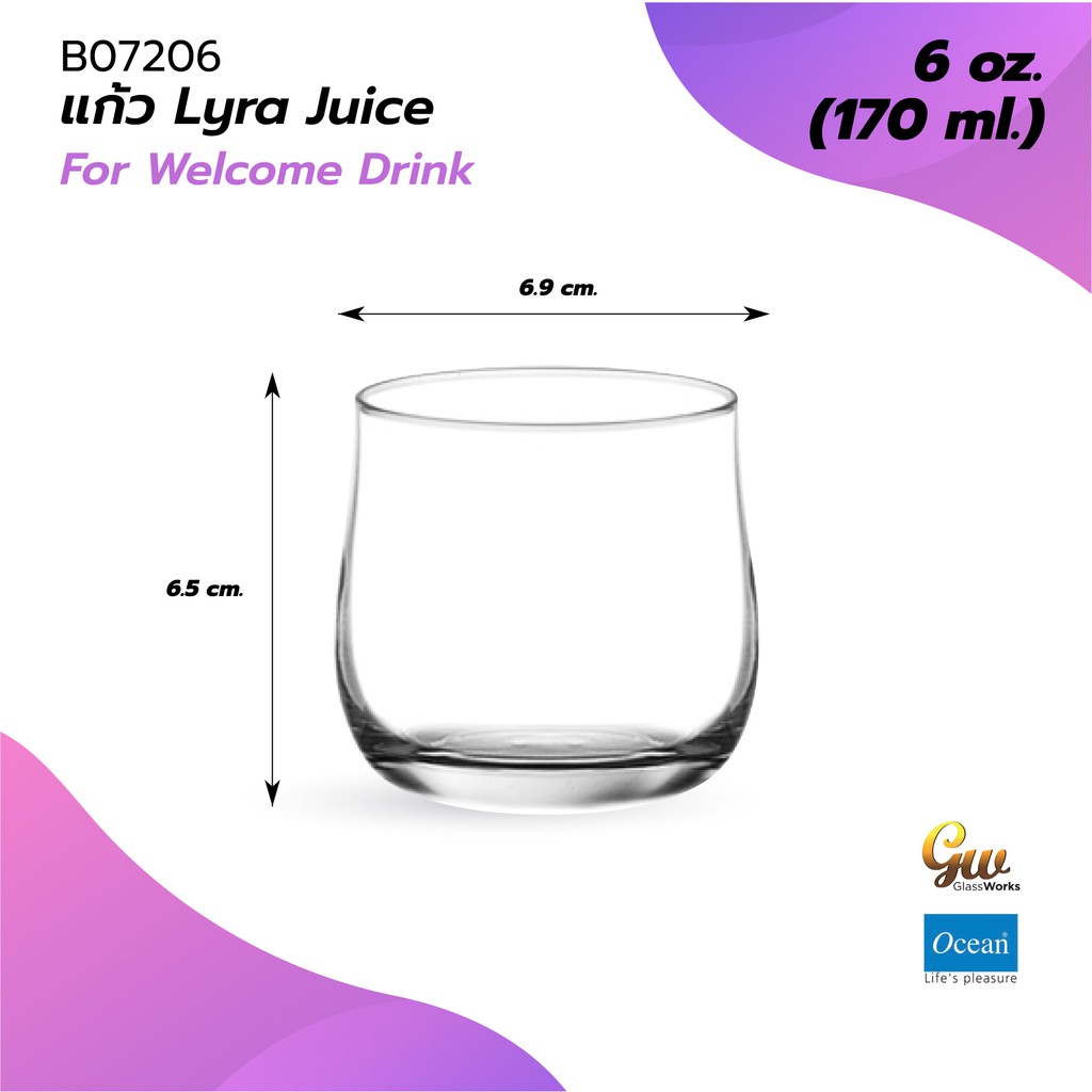 แก้วนำ้ผลไม้ Pack 6 ใบ Lyra Juice สำหรับ Welcome Drink แก้วโอเชี่ยน B07206 ( 6 oz.) 170 ml.