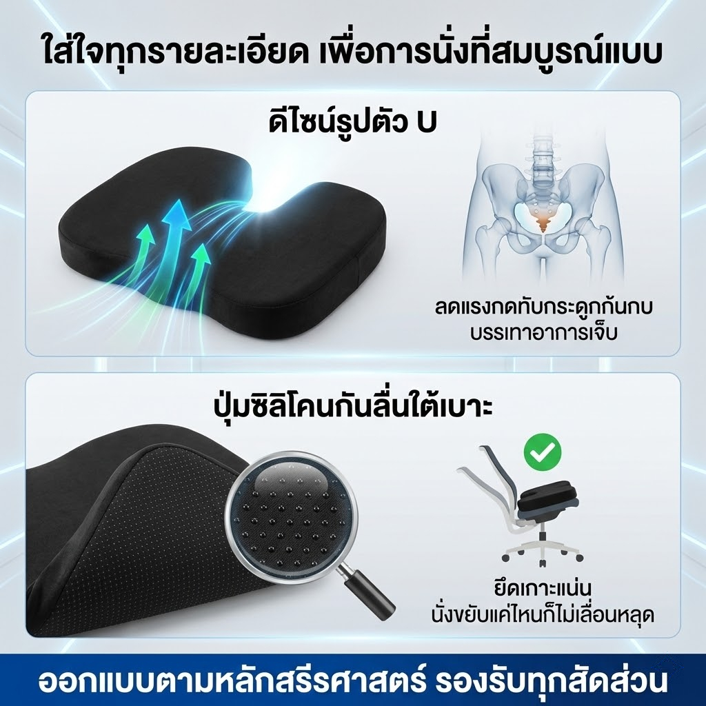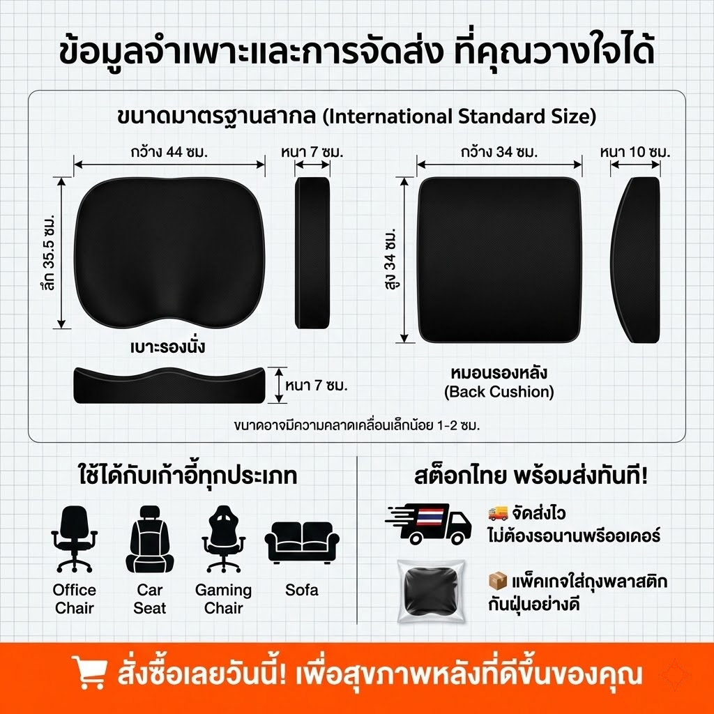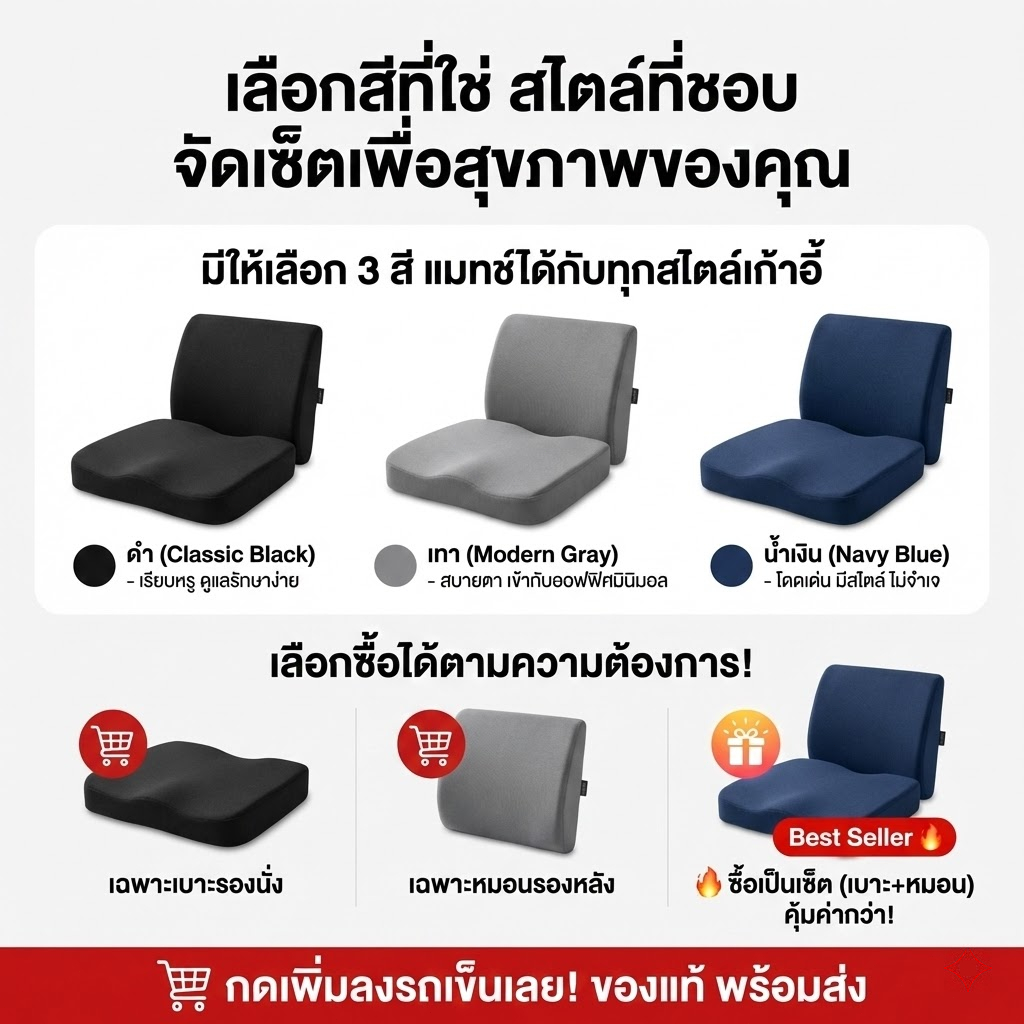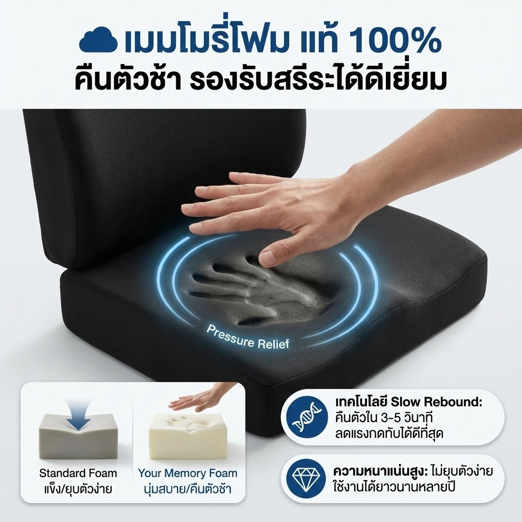 เบาะรองนั่งเบาะรองหลังเบาะรองเก้าอี้ลดอาการปวดเมื่อยเมมโมรี่โฟมแท้คลายความกดดัน