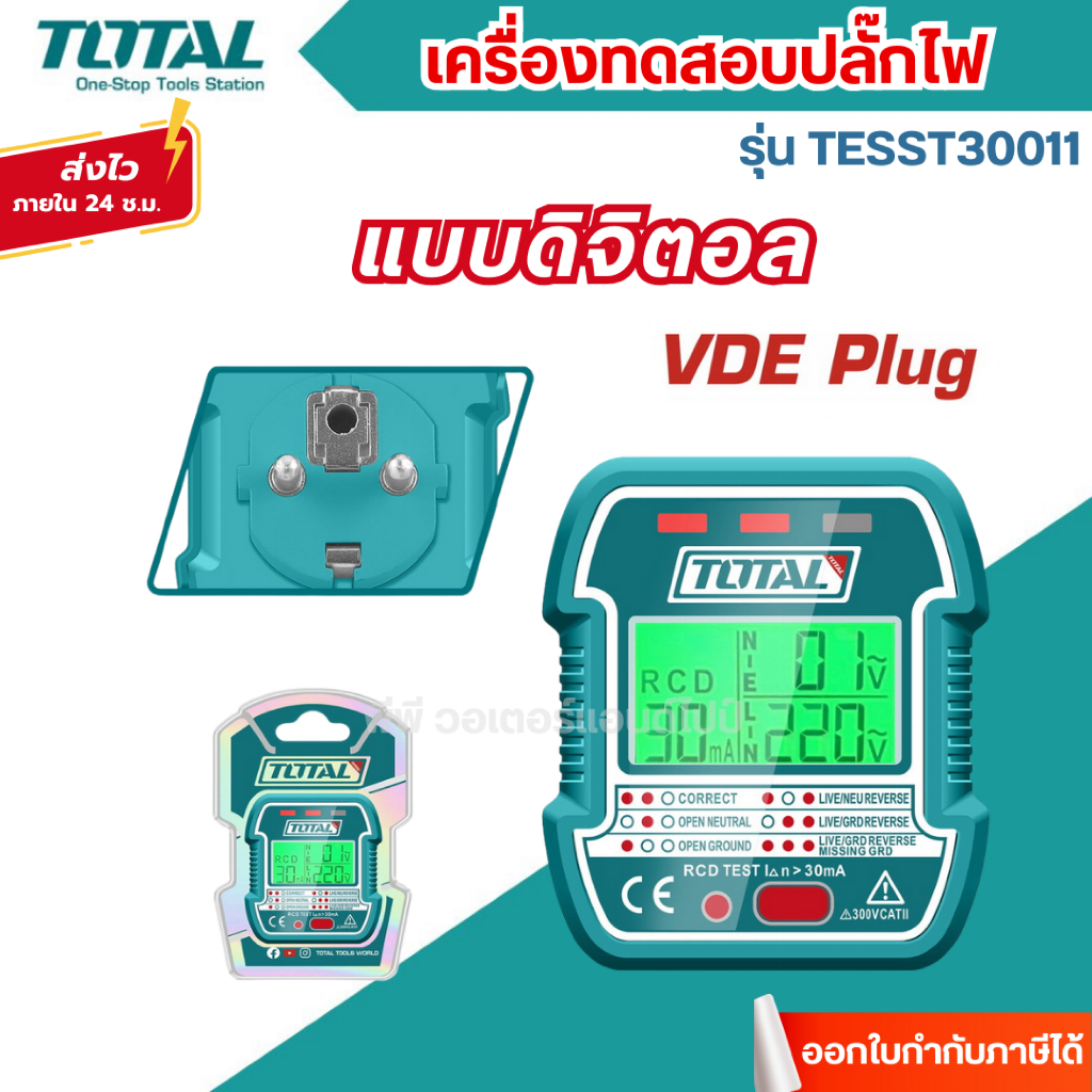 ส่งไว🔥[TOTAL] เครื่องทดสอบปลั๊กไฟ แบบดิจิตอล รุ่น TESST30011 ( Socket Tester )