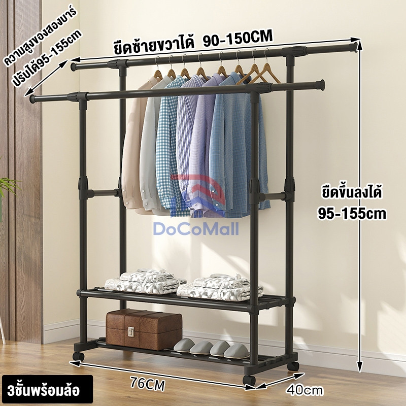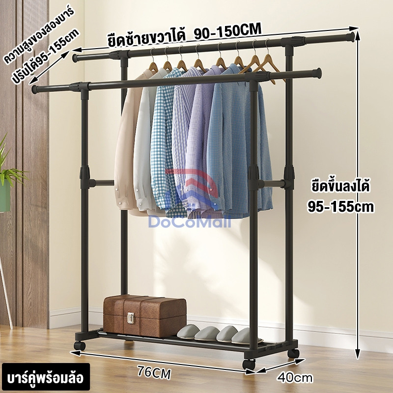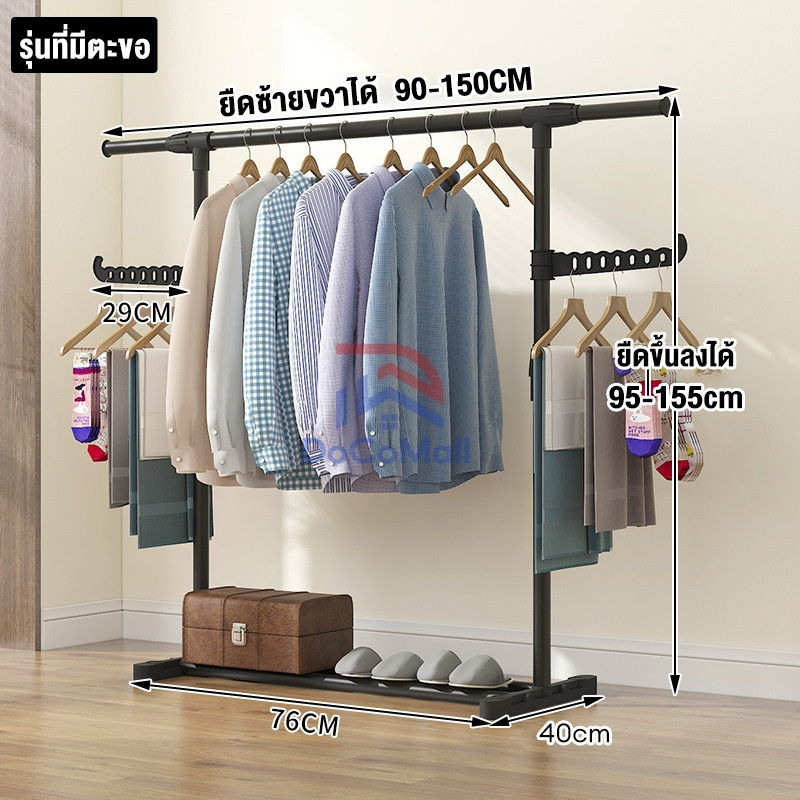 YIJIA[ราวแขวนเสื้อผ้าบาร์คู่] รุ่นหนา พิเศษ ราวตากผ้า Coat Rack ราวแขวนเสื้อผ้า ราวตากผ้าอเนกประสงค์ ที่แขวนผ้า ราวผ้า