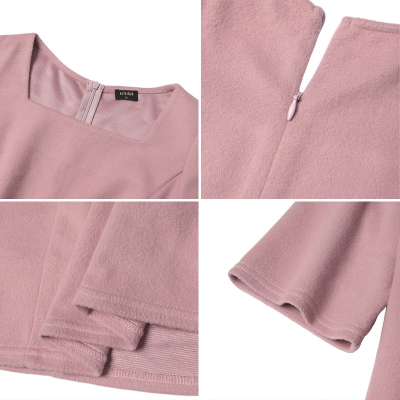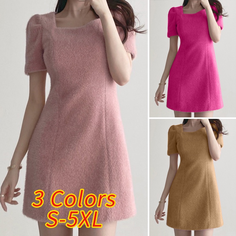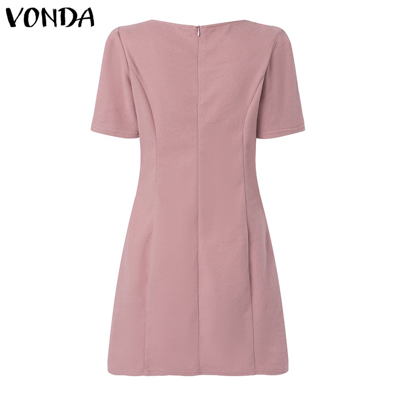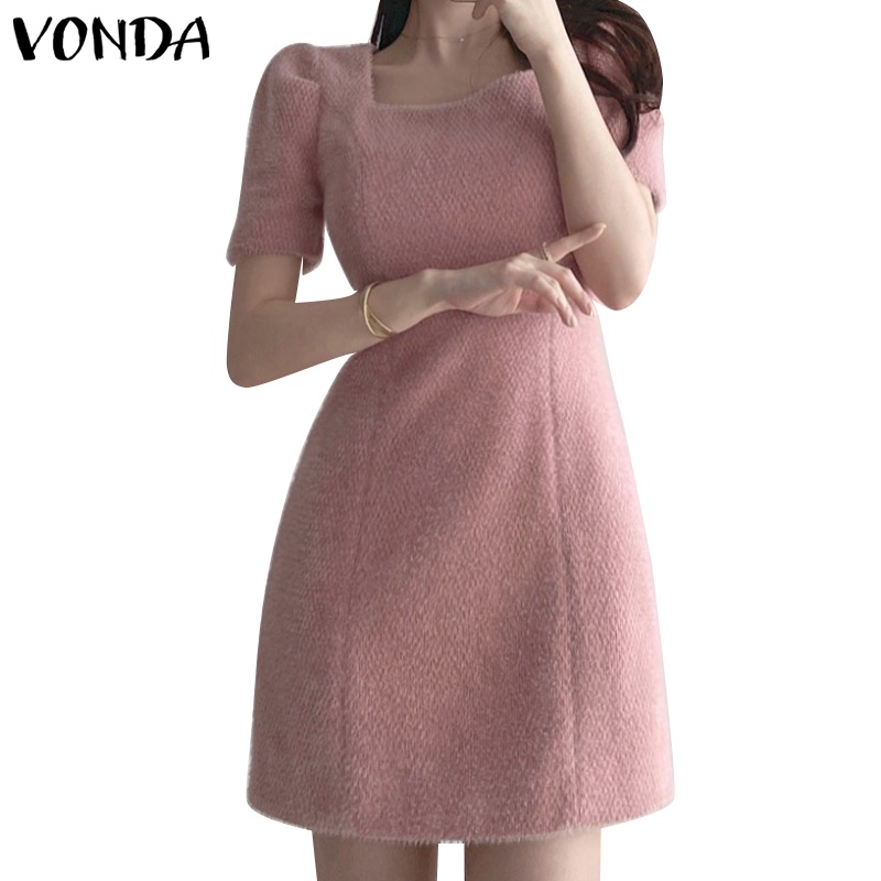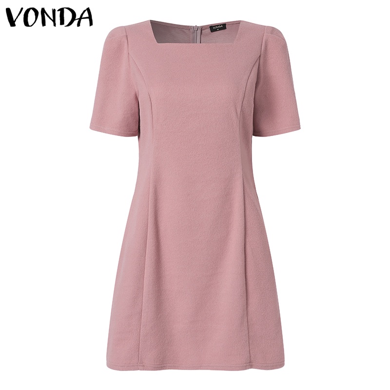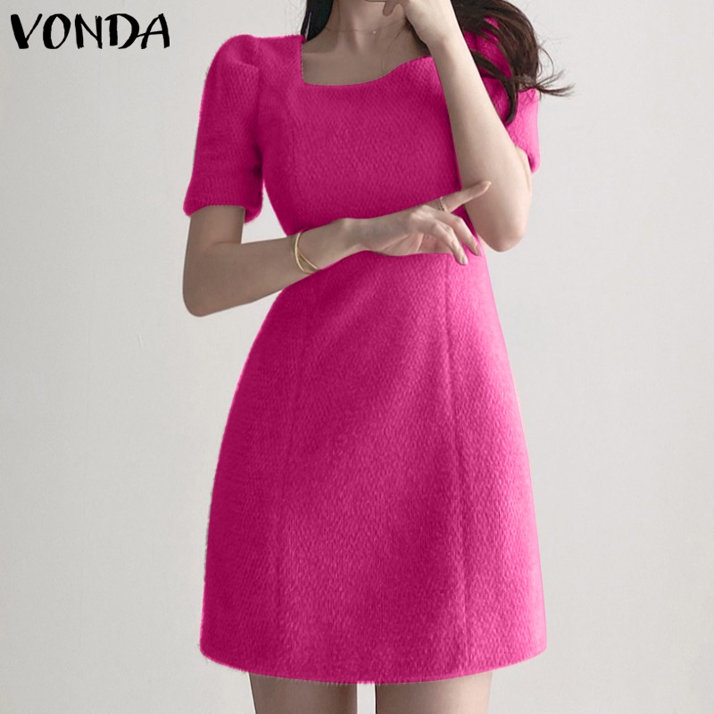 Vonda ชุดมินิเดรส ทรงเอ คอสี่เหลี่ยม แขนสั้น สีพื้น สไตล์เกาหลี สําหรับผู้หญิง