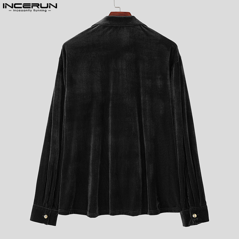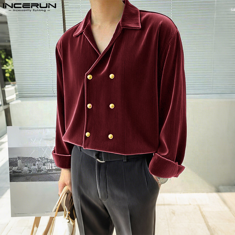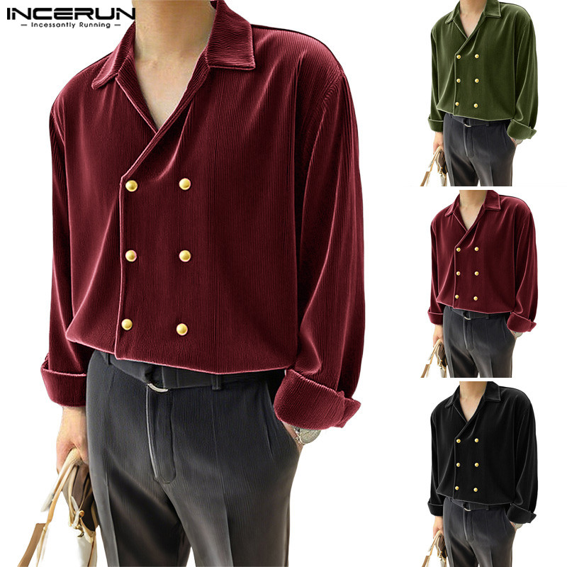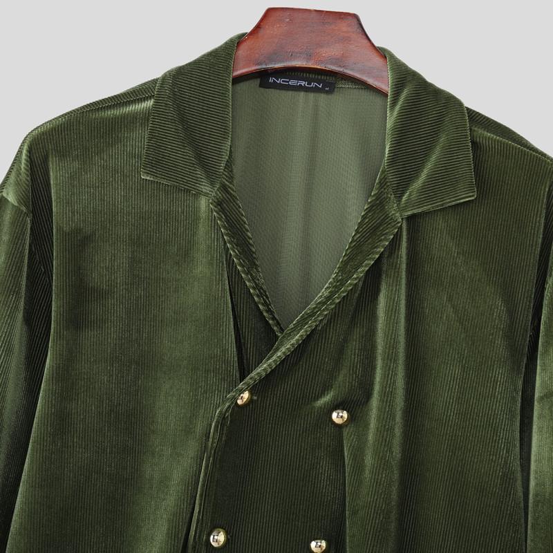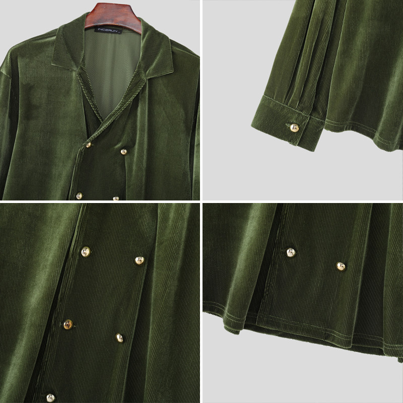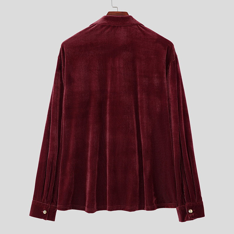 เสื้อเชิ้ตแขนยาวผู้ชายทำจากกำมะหยี่พร้อมกระดุมสองแถว